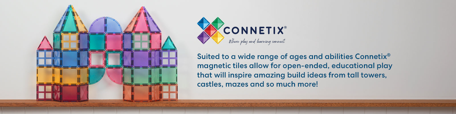 Whether you are looking to begin your magnetic tile journey, adding to an existing collection or searching for the perfect gift, there is a pack for you. Suited to a wide range of ages and abilities Connetix® will grow with your child as they play, learn, and explore. Inspire amazing build ideas from tall towers, to castles, mazes and so much more!