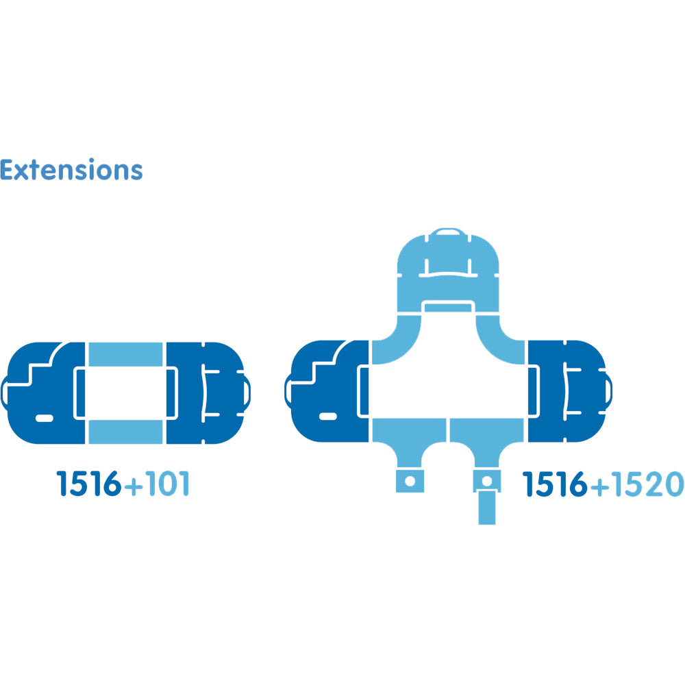 All AquaPlay systems are simple to put together and take apart, compact and easy to store, waterproof and reliable, indefinitely expandable with additional pieces, and are made from non-toxic recyclable plastic!