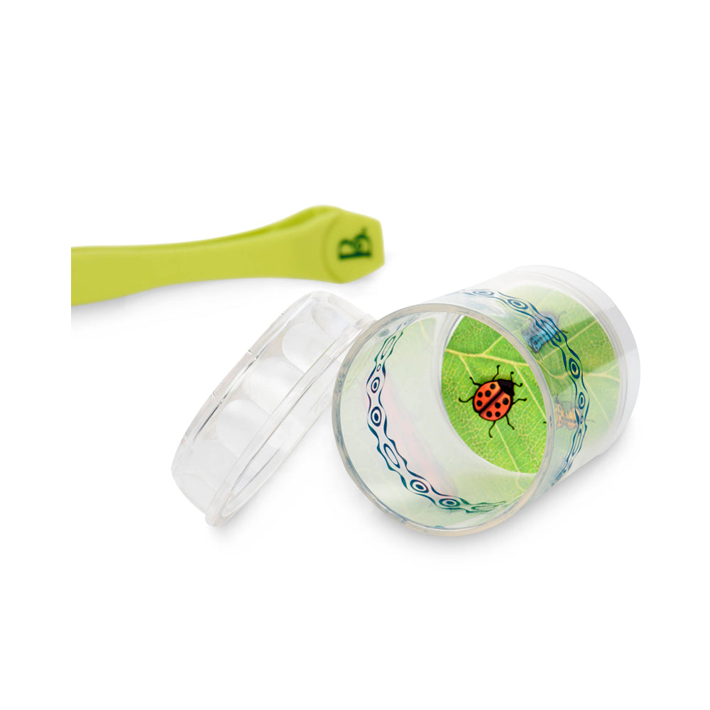 Catch your favourite bugs and pop them in the screened-in bug hut for closer inspection. Pick up crawly ones with the tweezers, and take a closer look with the magnifying glass. Includes bug carrier hut, plastic tweezers, magnifying glass, bug jar.