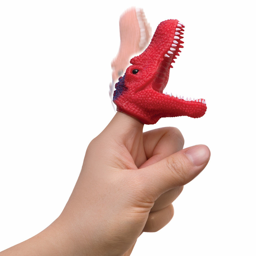 These detailed, flexible dinosaur finger puppets open and close with just a flex of your finger. Four different designs for fun pretend play! Sold individually.