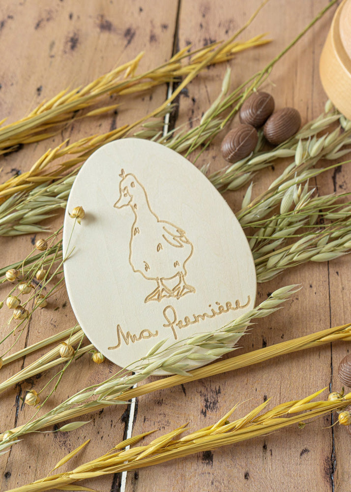 Don't want to miss a thing of the first months? Our My First program has been thought out specifically for those who wish to create memories of their little one with carefully designed themed accessories and products. The Baby Milestone Wooden Plate is the perfect finishing touch on the pictures your little one's first Easter celebration. The plate offers one side in English and on side in French. Sold in its small thematic envelope, keep it as keepsake of this special milestone.