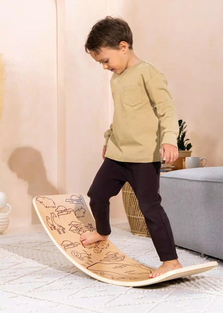 The Coco Village Balance Board is modern, minimalist and suitable for all ages. Versatile and innovative, it is designed to offer multiple purposes, serving as a swing, a bridge, a rocking chair and even a race track for toy cars! The Balance Board stimulates children's motor skills by developing their sense of balance, agility and physical strength.