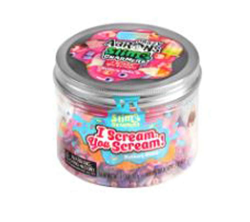 This silky smooth, buttery pink slime is filled with charms that represent the best treats on the planet, ICE CREAM! Pick your favorites or go with the works as you satisfy your frozen cravings. So don't skip on the toppings and go big with Slime Charmers I Scream, You Scream!