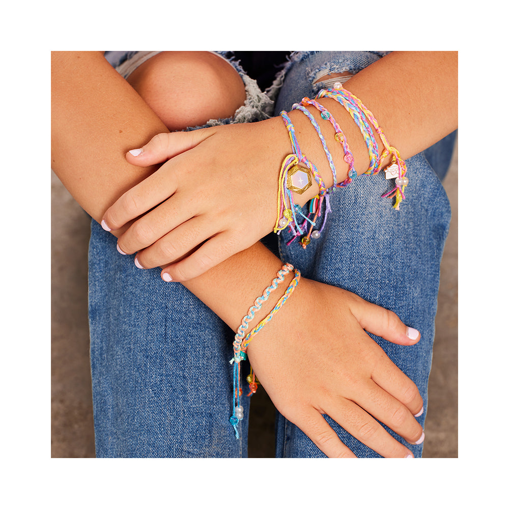 Our take on friendship bracelets combines beautiful cord and beads along with a few simple weaving techniques. Add the secret "mystery" locket along with your message of positivity. The perfect gift for your treasured friend or family