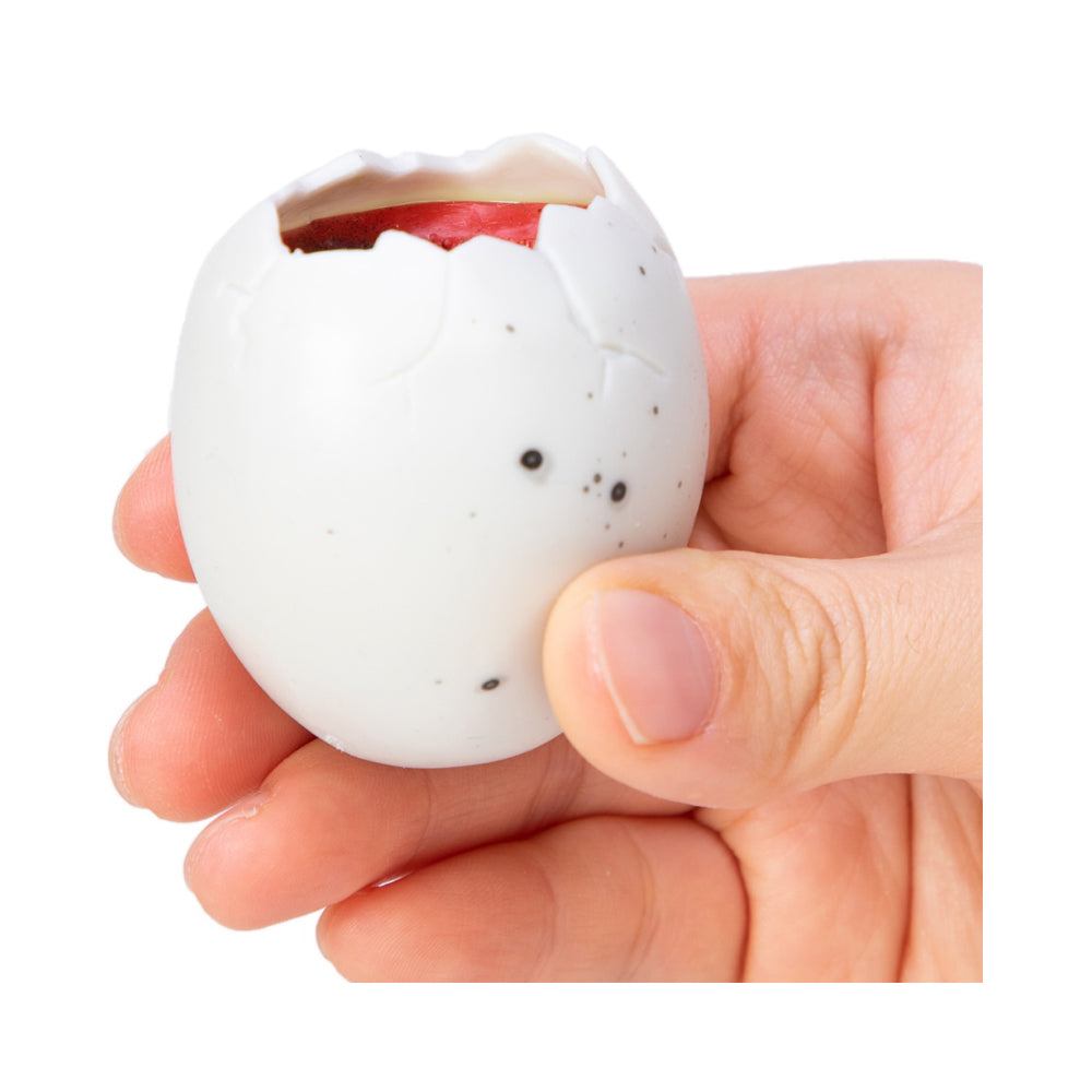 The teenie eggs are cracked open just slightly, revealing an adorable mini creature just waiting to peak out of its shell. Just give it a squeeze and out pops a dear little dino! These lovable little dinos are ready to play, and are the perfect companion for tiny hands to play with!