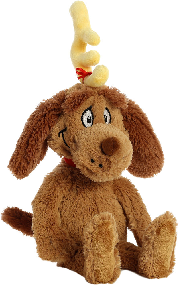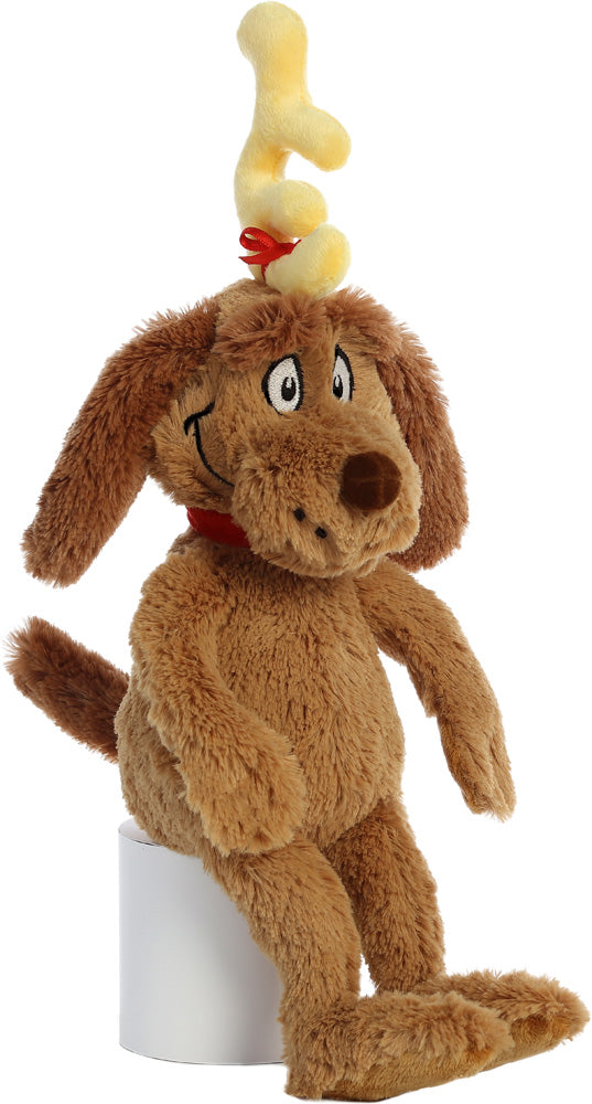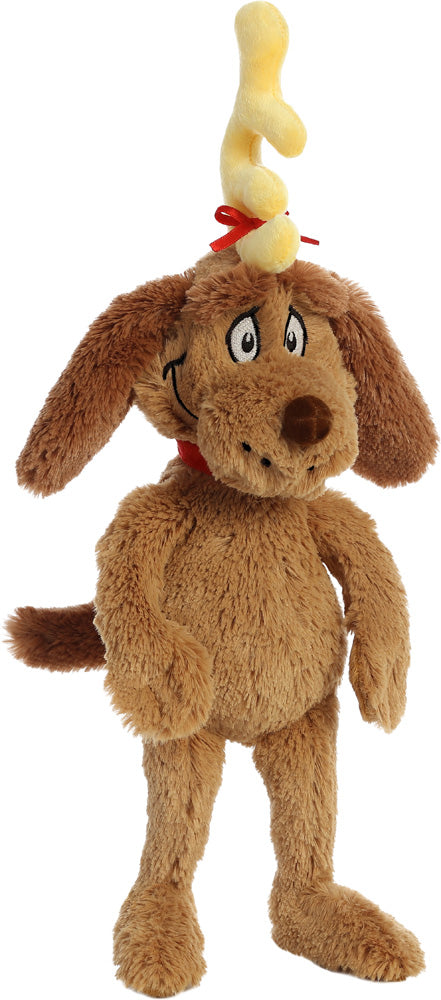 Recreated by Aurora as a super-soft plush toy, Max has an antler (non-removable) on his head, ready to lead the Grinch's sleigh for all his Grinchy mischief. Please note that Max does not stand on his own, he needs a loving, helping hand.