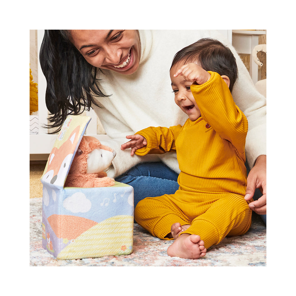 Reimagining the classic Jack in the Box format, our interactive fox sensory toy features two play modes to surprise and delight babies. Play Mode encourages baby to tap anywhere on the box and coax Emory the fox out to play interactive games of peek-a-boo. In Song Mode, the fox gradually emerges from his hiding spot and sings a playful song for baby. Share in the moments of discovery and giggles with your little one! Features Two Modes: Song & Play Modern Pastel Colors - Compliment Any Nursery Décor! Premium GUND SoftnessEngaging Child's Voice to Guide Baby through Play Fox in a Box is also adorned with modern, on-trend pastel colors and playful fox illustrations on all sides, making it the perfect nursery display piece and an impressive gift for new parents. Fox in a Box is surface-washable for easy, convenient cleaning. Do not attempt to machine-wash or apply harsh chemical cleaners. Appropriate for babies ages six months and up.