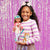 Tavi is a 14" Glitter Girls doll with bright green eyes and long brown hair that's fun to brush and style. And she's poseable! She can bend and rotate her arms and legs to easily change outfits and take Nougat on fun walks to the dog park. Nougat has super soft plush fur with glittery ears, a sparkly collar, and an attachable leash that fits around Tavi's hand!