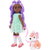 Neve wows with her gorgeous brown eyes, soft lashes, and bright purple hair that is super silky-soft - perfect for styling! Undo her space buns and make a new 'do from scratch! Then, strike a pose. Neve's arms and legs bend and her head rotates easily, so she can do anything! Want to take Candy for a walk? Just clip on her leash - the handle fits in Neve's hand! Candy has soft, plush fur that is peachy pink. Plus, her ears sparkle! The fun never stops with this colorful 14-inch doll and puppy pair. Mix and match with all Glitter Girls dolls, playsets, and accessories! Recommended for kids 3 years and up.