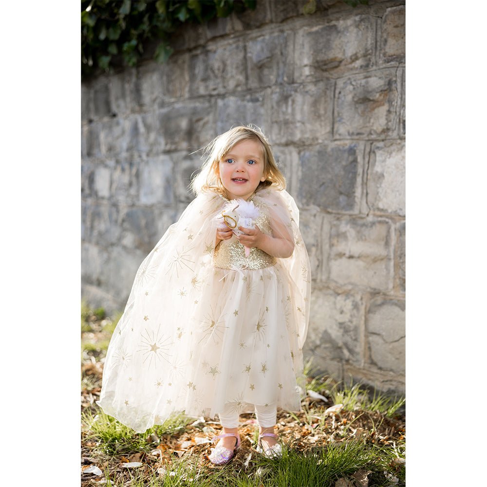 This gorgeous Glam Party Gold Cape is so beautiful your little one will love it, and it will impress everyone around! Elegant with sparkly gold stars throughout the cape, and gold stars tie around the neck, this is a comfortable with easy on and off design. This cape is surely to be loved and cherished for many years to come! Pair it with Sparkle Star Tutu and you have the perfect set! Just like all Great Pretenders they are machine washable!