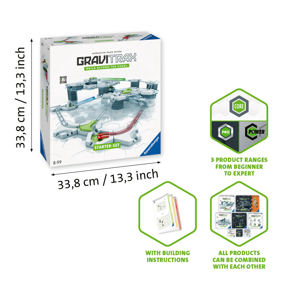 Build action-packed track systems for hours of fascinating fun with the versatile "GraviTrax Starter-Set"!