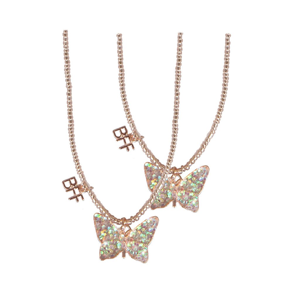 This BFF Butterfly Necklace 2-piece set is a deal with two for one necklaces to share with your BFF! Beautiful butterfly pendant studded with tiny iridescent beads on a golden necklace, and of course a BFF pendant to complete this wonderful set.