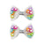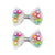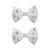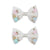 These 2 piece bow clips are the perfect accessory! Each clip is made from a soft mesh tulle pocket pinched together and wrapped with glitter trim. The pockets are filled with tiny beads and hearts, perfect for a bowtastic party!