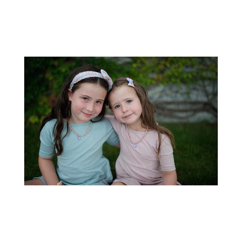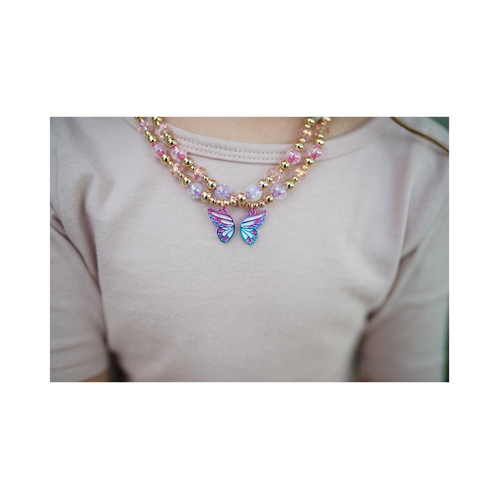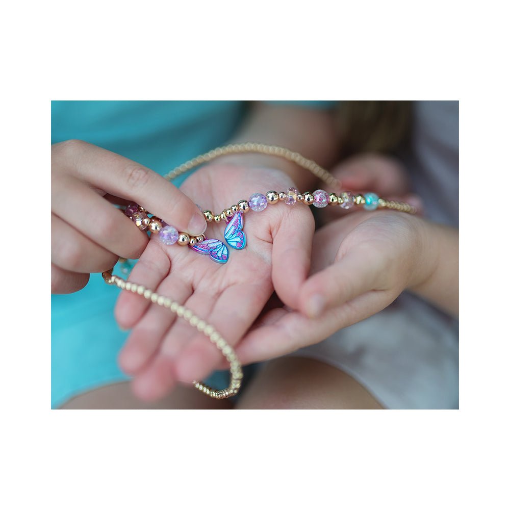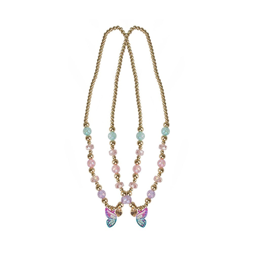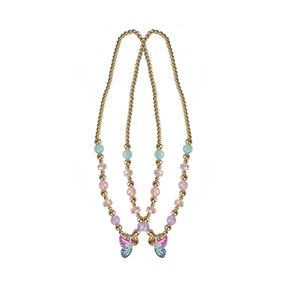 This Butterfly Wishes 2-pc BFF Necklace is a fun and a beautiful set of two matching necklaces to share. Designed with golden beads and strung with crystal pink and blue shiny beads, the necklaces feature adorable BFF heart shaped pendants and a beautiful butterfly to share with your sister or your best friend!