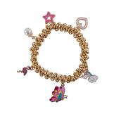 Everyone needs a good charm bracelet in their jewellery collection! This unique bracelet features six different charms: a pink star, a pearl pendant, a pink flamingo, a colourful butterfly, a rainbow cloud and a light pink heart. It's the perfect mix of classy elegance with a touch of fun.