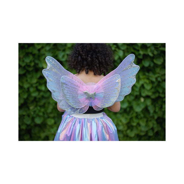There is a good reason to call these Magical Unicorn Skirt & Wings MAGICAL! The soft lilac wings are adorned with pressed glitter decals and a charming glittery unicorn. The multi coloured shimmery skirt has the reflective holographic rainbow effects. The elasticized waistband is soft and comfortable and has that extra size flexibility. The skirt is machine washable! Great Pretenders products are made with durable, premium quality materials and exceptional workmanship!