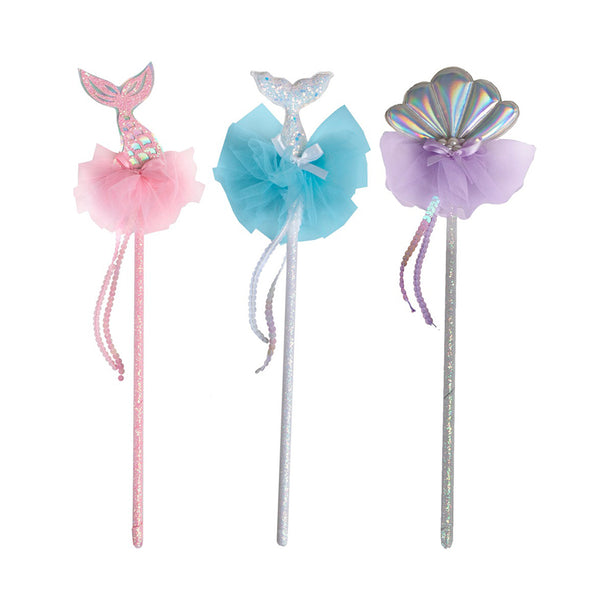 Sparkles, glitter, pearls, and shiny sequins adorn these Mermaid Wands. Adorable and magical, these wands are perfect for all little mermaids to spread their happiness under the sea! All three styles are amazing designs, random design will ship based on availability! Great Pretenders products are made with durable premium quality materials and exceptional workmanship!