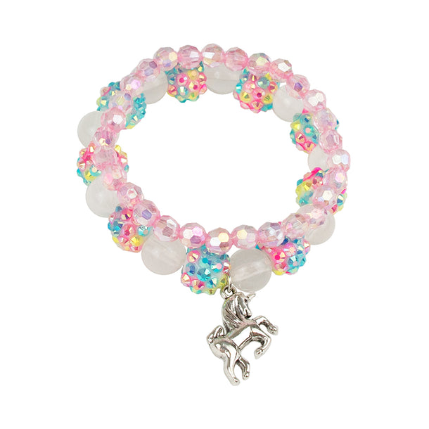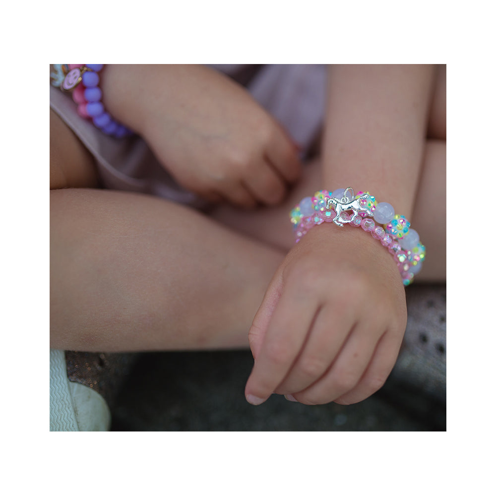 This sweet and charming Sparkle Pony 2-pc bracelet is already our fan favourite with multi-faceted beads in soft pastel colours. The AB coated rainbow crystal beads sparkle and shine at all angles and in any light! Adorned with a silver pony charm, this bracelet will be cherished by all our little princesses!