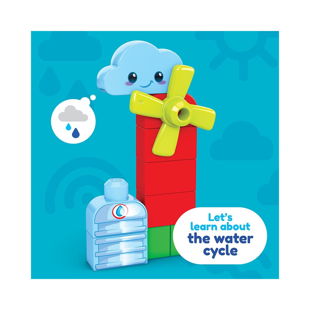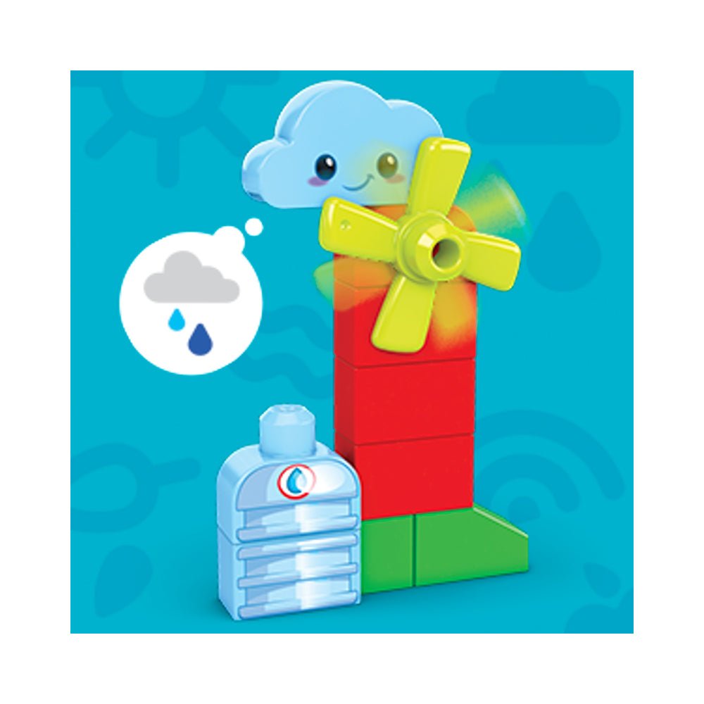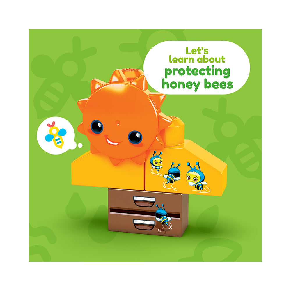 Little builders can lend a helping hand at the "Grow & Protect Farm" and learn about green behaviors like buying local produce, learning about the water cycle and protecting honey bees. This building set comes with 52 big building blocks including special pieces, and 2 rolling wheelbases. Toddlers can build a rolling tractor, a barn, crops, a beehive, a turning windmill and 3 characters. Your little one can even mix and match the 3 buildable characters. First Builders™ building toys are designed for ages 1+