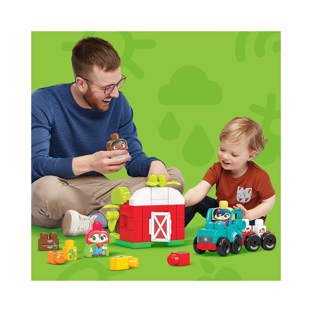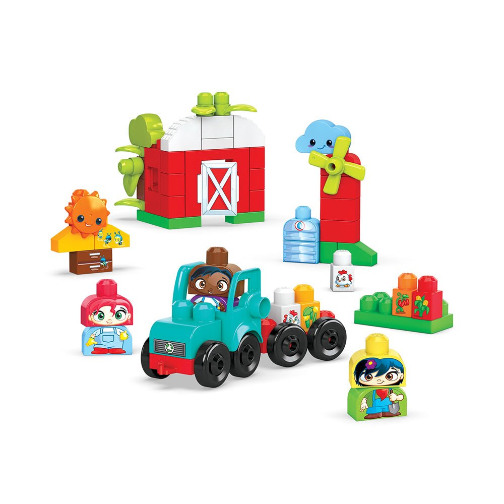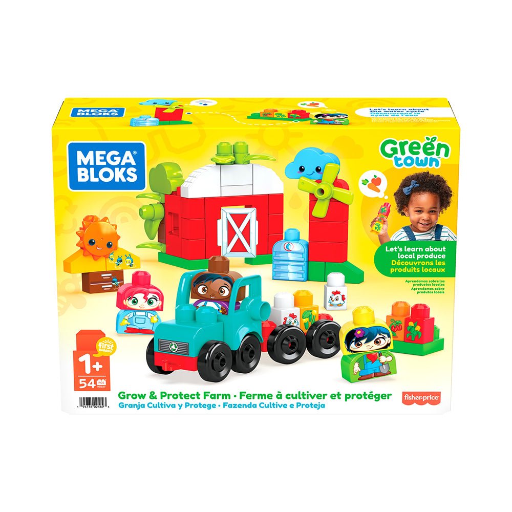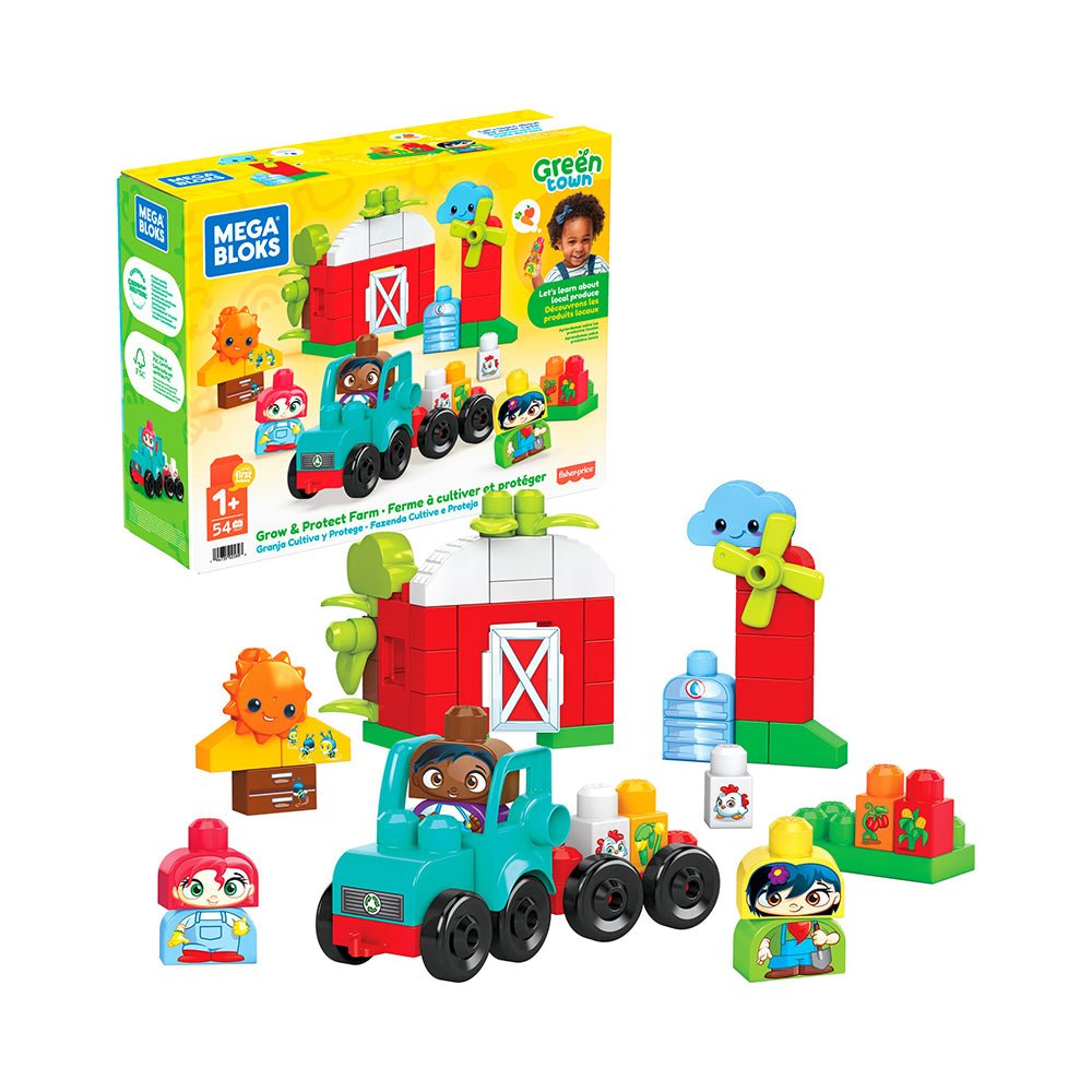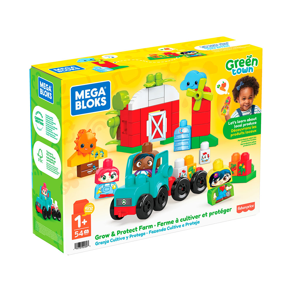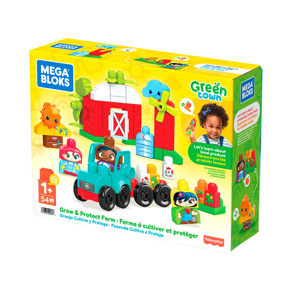 Grow & Protect Farm Mega Bloks Green Town Grow & Protect Farm Building Set, 54 big building blocks and special pieces with 3 buildable characters, rolling tractor, barn, crops and beehive, toy gift set for ages 1-5 52 big building blocks including special pieces 2 rolling wheelbases