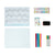 Includes 1 reusable storage case, 4 whiteboard pens, 10 sticks of mini chalk, 6 colour markers, 5 printed paper sheets, 5 white paper sheets, 1 double-sided magnetic drawing board, 14 magnetic number stickers, and 1 blackboard eraser. Size 32cm (H) x 34.5cm (W) x 3.8cm (D). Suitable for ages 3+ years. This product contains small magnets. Follow usage instructions carefully.