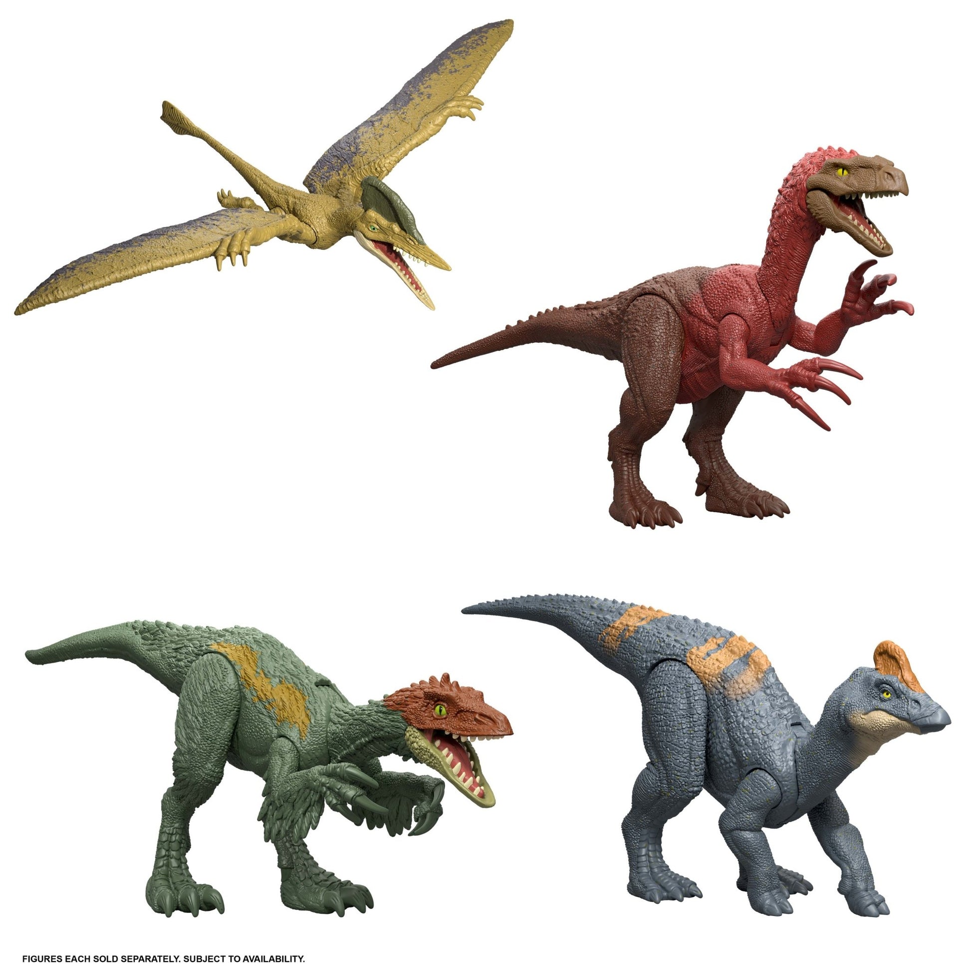 These Frenzy Pack dinosaurs inspired by Jurassic World Rebirth are known to herd, hunt and attack in packs. Choose from carnivores and herbivores, with movable joints, realistic sculpting and authentic decoration. Ready for play or display by fans ages 4 years and up. Scan the Tracking Code on the dinosaur's foot in the free Jurassic World Play App with a compatible smart device (Android or iOS, not included) to unlock a digital version of the dinosaur and play the fiercely fun game to race various vehicles on land, air and sea. Colors and decorations may vary. Be a part of thrilling action and adventure with these Frenzy Pack dinosaurs inspired by Jurassic World Rebirth. Known to herd, hunt and attack in packs, these dinosaurs have movable joints for pose and play battle fun. Each figure sold separately, subject to availability. Figures include herbivores and carnivores with realistic sculpting and authentic decoration at about 7 inches long and 3 inches tall. They make a great gift for Jurassic World fans 4 years and older. Scan and collect! Scan the code on the dinosaur's foot in the free Jurassic World Play App with a compatible smart device (not included) for AR activities and to create a digital dinosaur collection! Ride 'N Rampage: Colossal Chase! In this updated app game, race various vehicles on land, air and sea and play an exciting shooting game that extracts DNA from the dinosaurs!