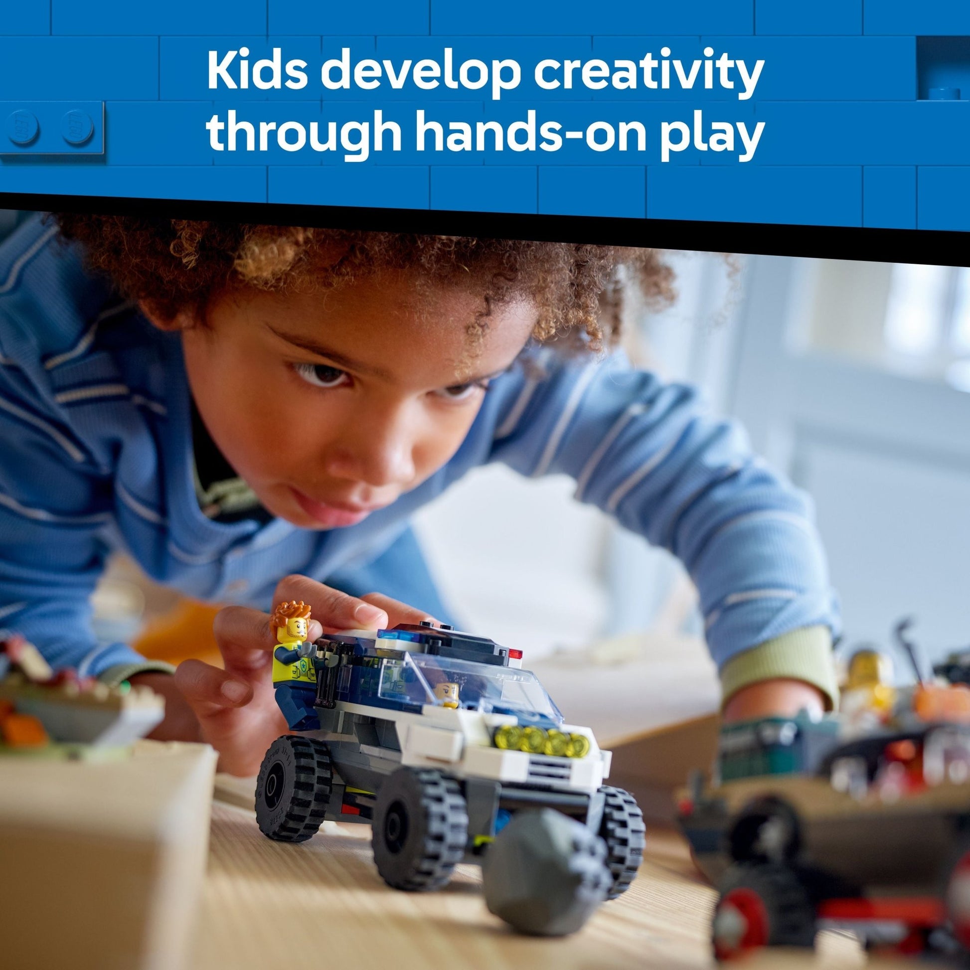 Foot-to-the-floor police pursuit adventures await with the LEGO City Off-Road Police Chase (60449) vehicle set.