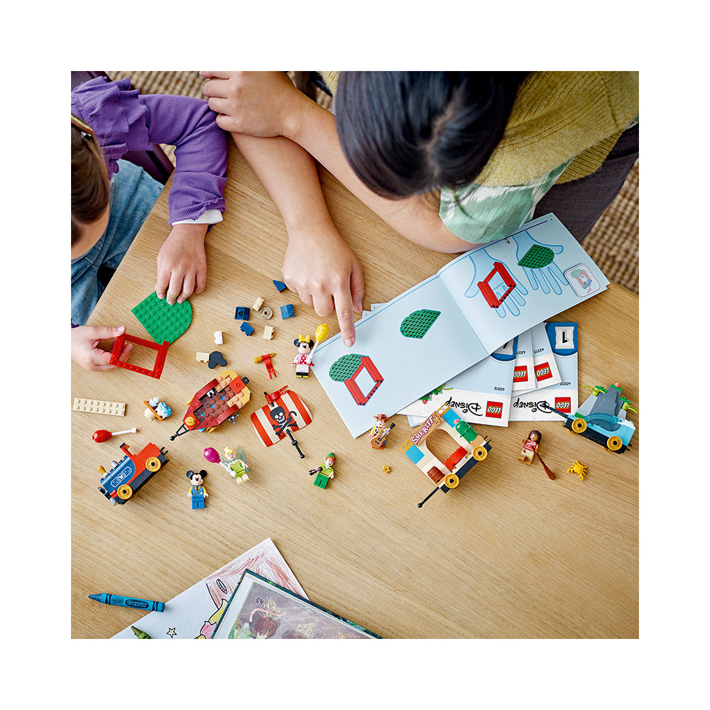 The LEGO Disney: Disney Celebration Train (43212) set features a station, engine, 3 train floats and 6 LEGO minifigures: Mickey Mouse, Minnie Mouse, Moana, Peter Pan, Tinker Bell and Woody. You and your kids can enjoy an intuitive building adventure with the LEGO Builder app, which includes zoom and rotate tools so little ones can visualize the model as they build. Create, imagine, grow This 4+ set boosts children's confidence with a fun play experience, while Starter Bricks give kids a sturdy base for the build. Each bag has a character, so kids can start the play at any point and finish the set later. Family fun 4+ sets are a great way for adults to share the fun with young kids. If grown-ups are also new to LEGO building toys, not to worry - kids can take control because this set also comes with picture instructions, making it easy for those who are just starting to read to follow the progress.