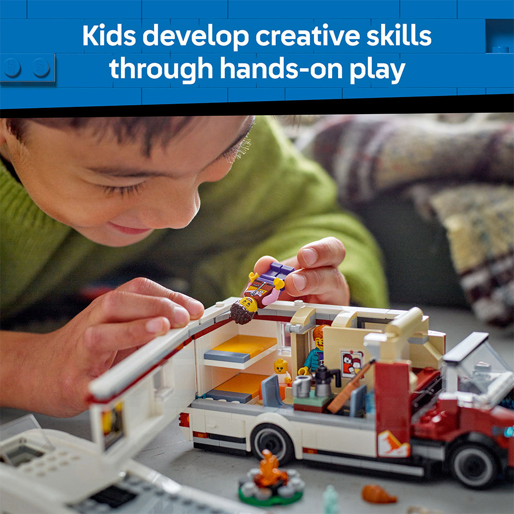 Kids can travel wherever their imaginations take them with the LEGO City Holiday Adventure Camper Van toy (60454).