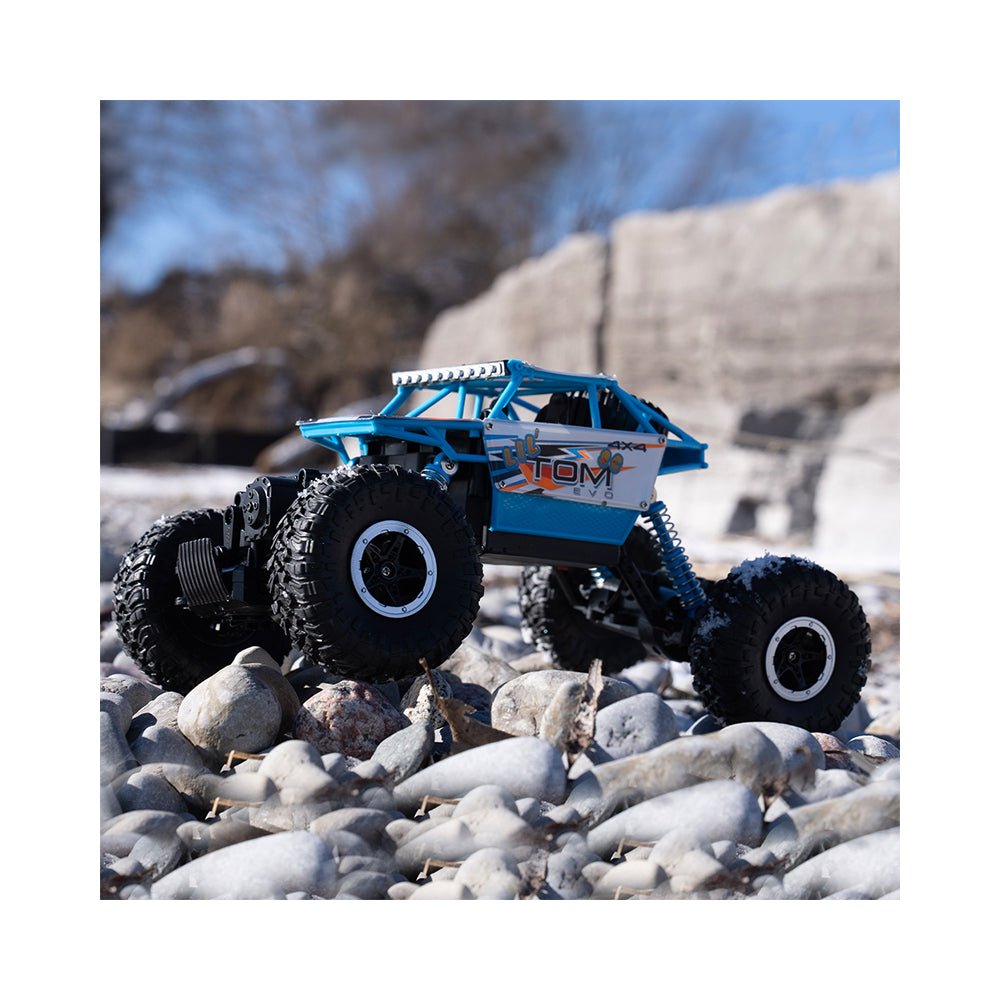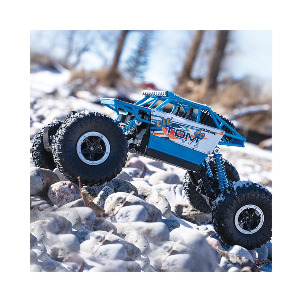 Originally designed as a Rock Crawler, it's high Travel Suspension can easily navigate through rough terrain. Twin motor setup delivers robust power to the front and rear axles - all controlled by the included 2.4 Ghz Controller.