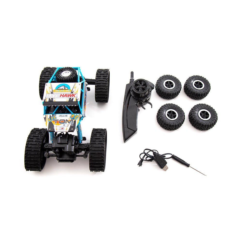 This 2- in -1 version has a set of wheels /tires and tracks. Swap back and forth for the terrain you are running on. Tear through the snow or sand with SC's custom designed tracks! LiteHawk LIL' TOM SC EVO is ready for adventure.