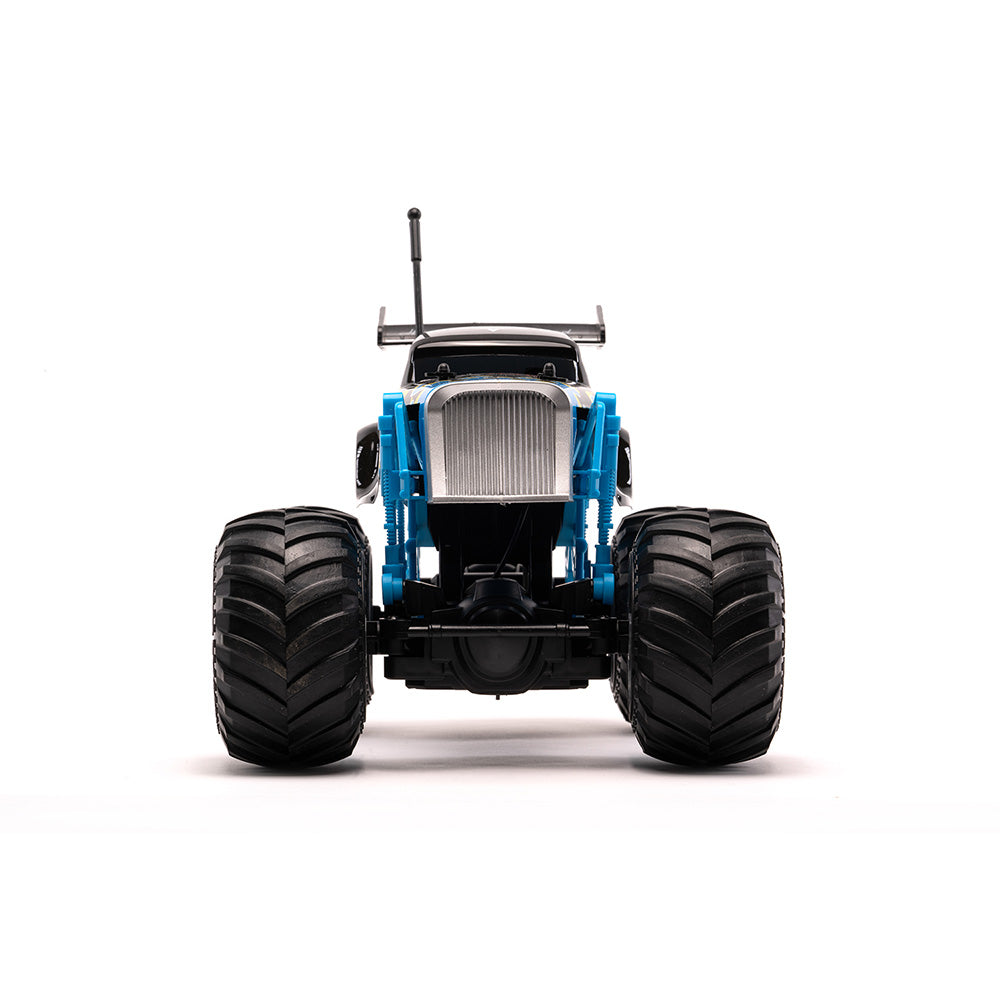 Each Monster Truck in the WHEELERS line of product come stylized with their own unique colours, drivers, sticker sets, and more! Designed with fun in mind, they are outfitted in bright colours with awesome designs and epic drivers. WHEELERS are a blast to drive around, indoors or out. HENRY'S HOT ROD style is modeled after the hot rodding V8 muscle of the past but channelled into the car crushing size and force of a monster truck. Henry's Hot rod is blazing a trail to glory!