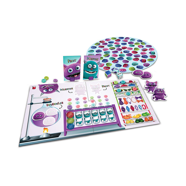 They must wash up, eat breakfast and get dressed before going to school. Some mischievous little monsters hide to avoid the morning routine. Play the different games and plan your turns carefully to be the first to catch your pack of monsters: 3 Bouboules, 1 Morveux and 1 Prout.