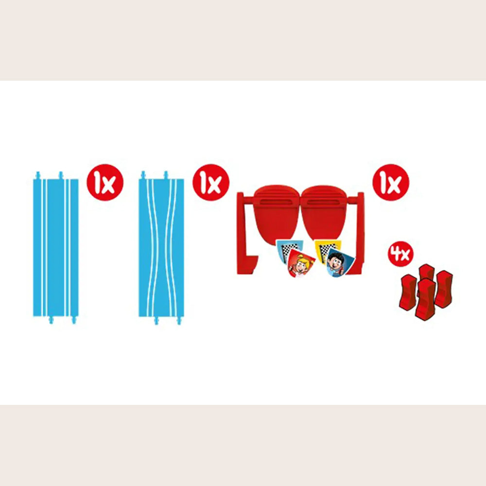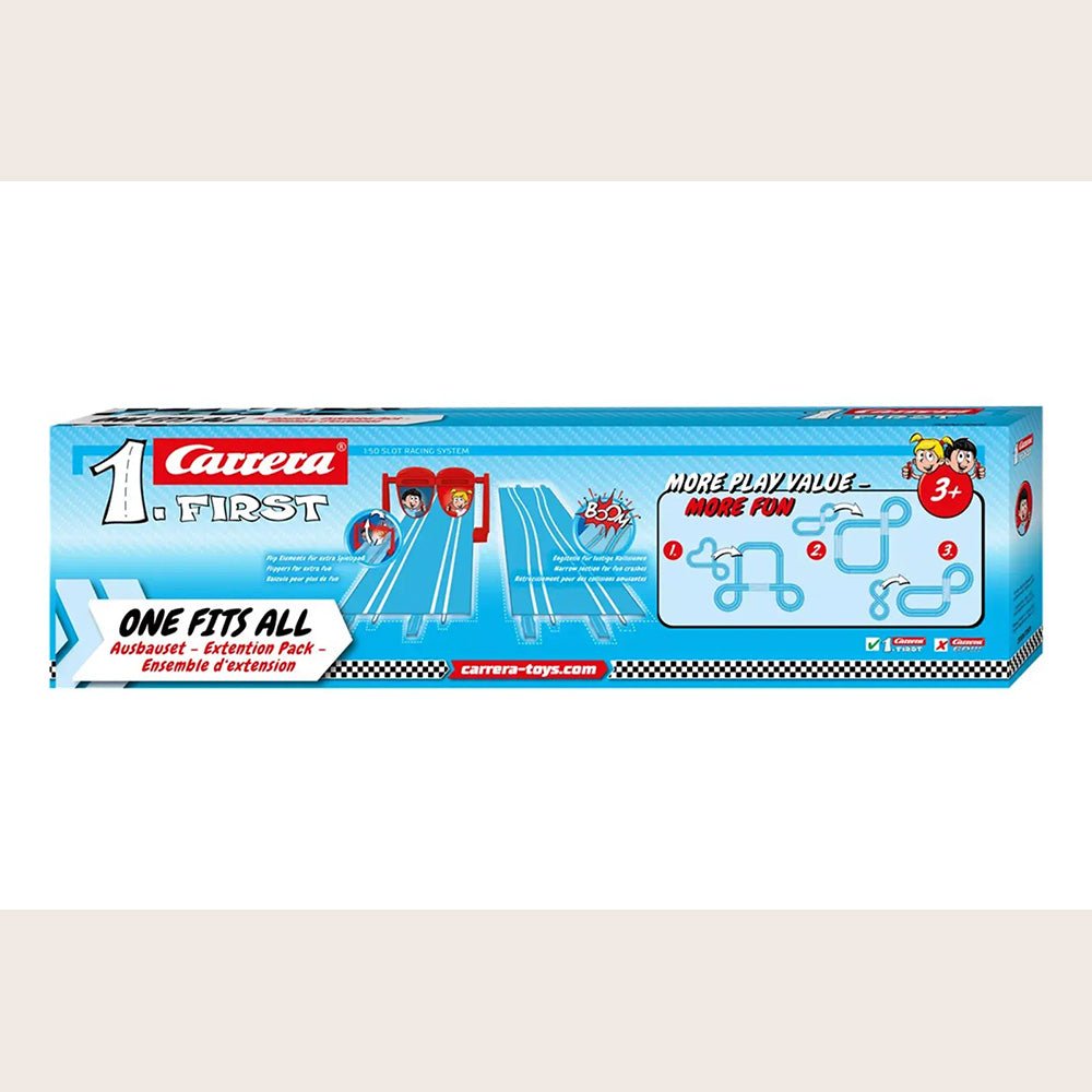 Now you can add on to your Carrera First racetrack with the "One Fits All" expansion pack.