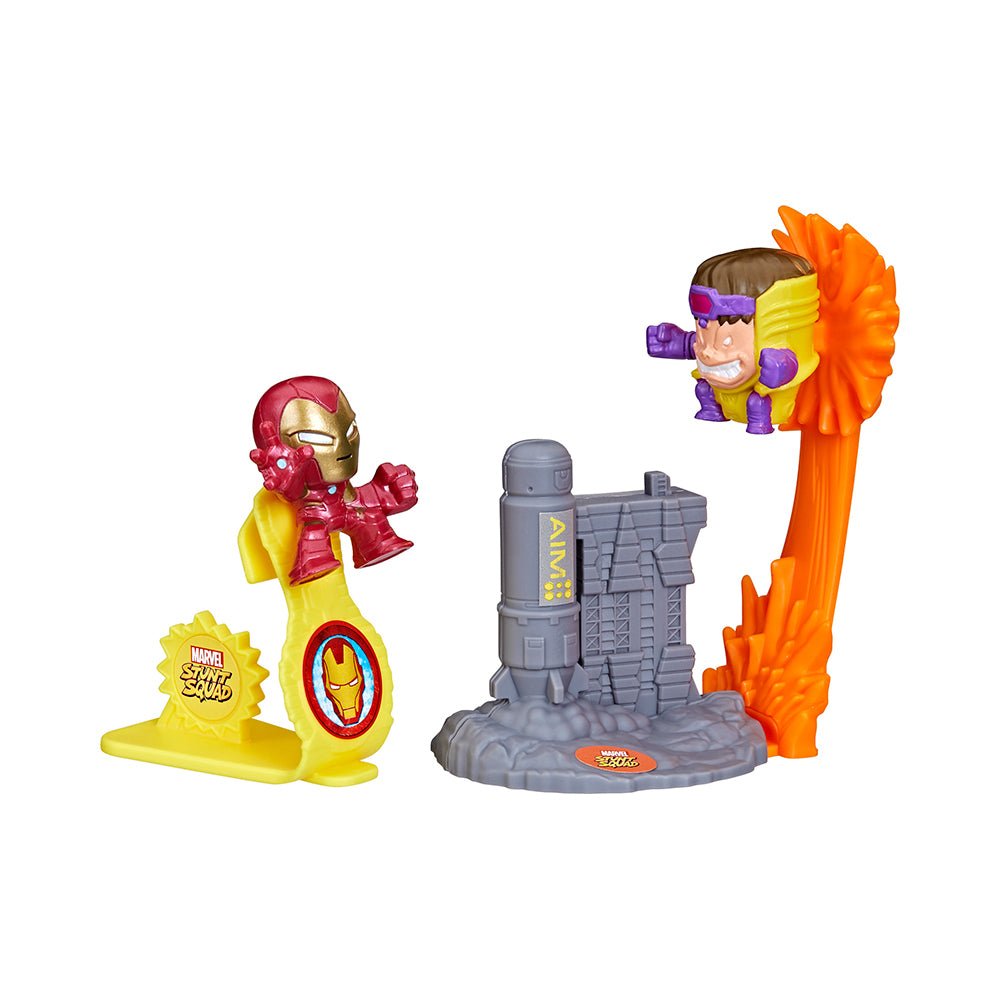 Mighty heroes, mega attitude! Marvel Stunt Squad Iron Man vs. M.O.D.O.K. Playset is a gamified action figures set that kids will love. With favorite Marvel characters in a classic hero versus villain play pattern, these small scale super hero figures are full of dynamic poses and action-packed fun! Marvel Stunt Squad Hero vs. Villain Playsets include two 1-inch-scale figures, a launcher, and a target base.
