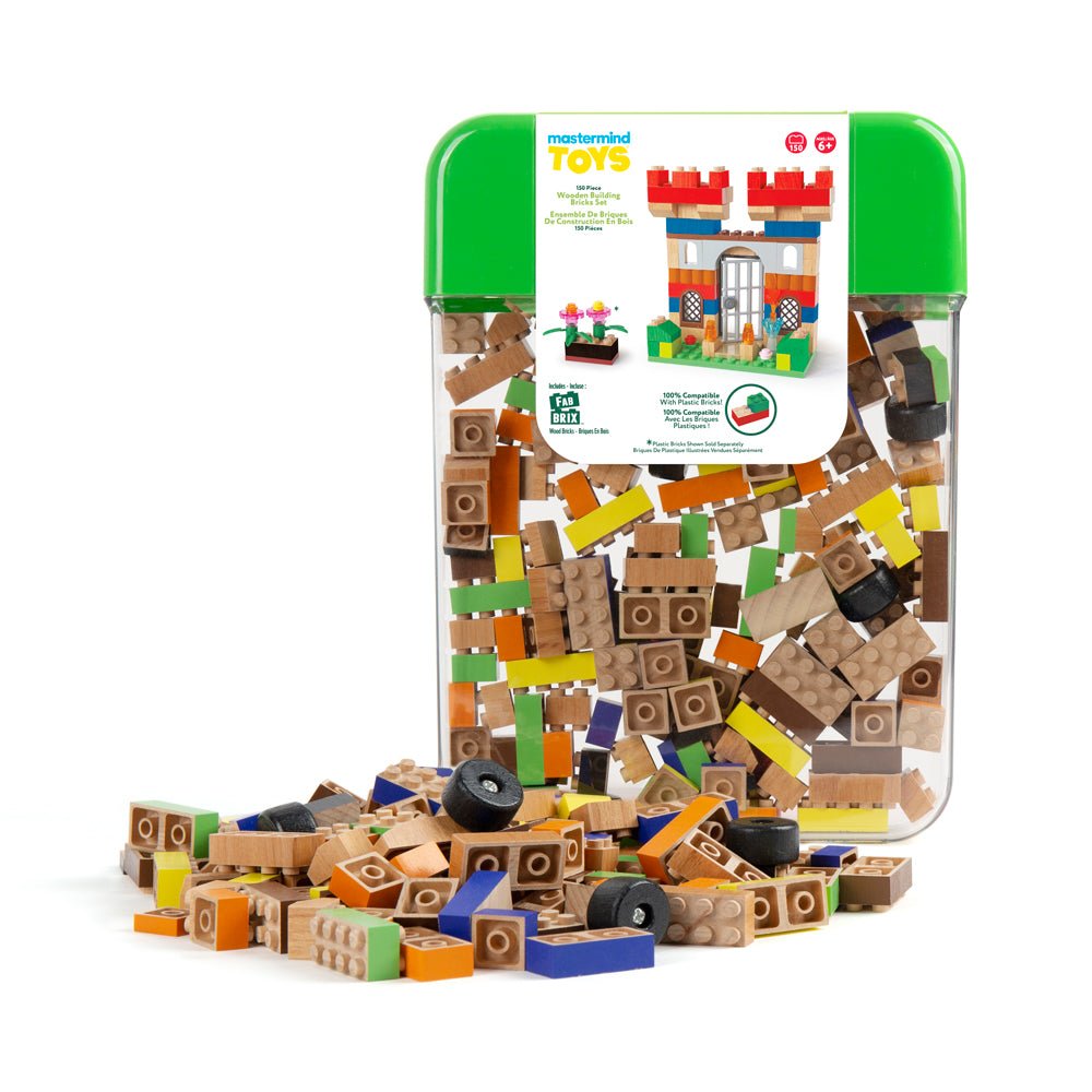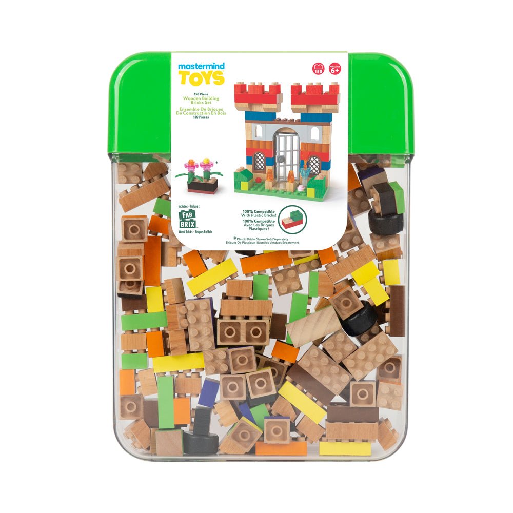 Unleash unlimited creativity with the Mastermind Toys 150 Piece Wooden Building Bricks Set. Made from 100% pure FSC wood, our bricks come in a reusable storage container that is made from recyclable PET, making this building set a complete, planet-positive alternative for your toy box. Fully compatible with plastic bricks (sold separately).