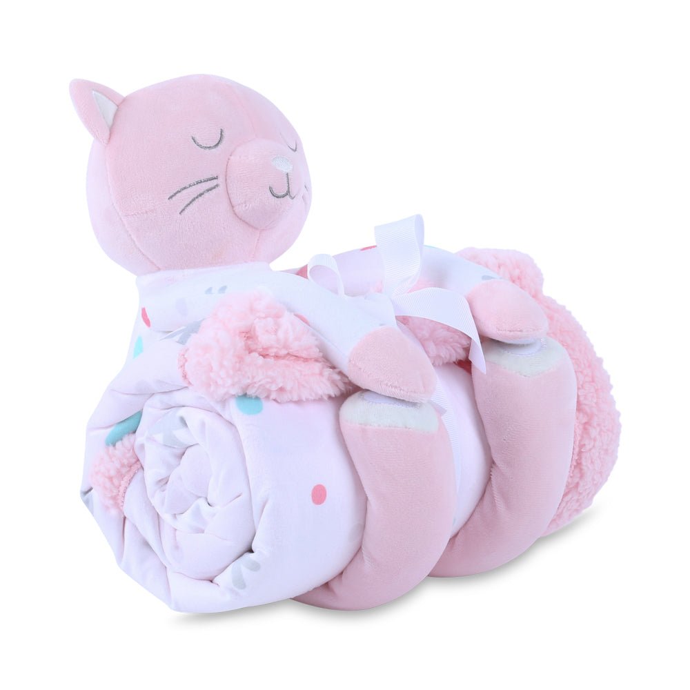 A cozy blanket held by a plush friend, our Playful Cuddles 2pc set is ultra soft and full of fun. Printed micro mink reverses to solid sherpa backing. 100% polyester.