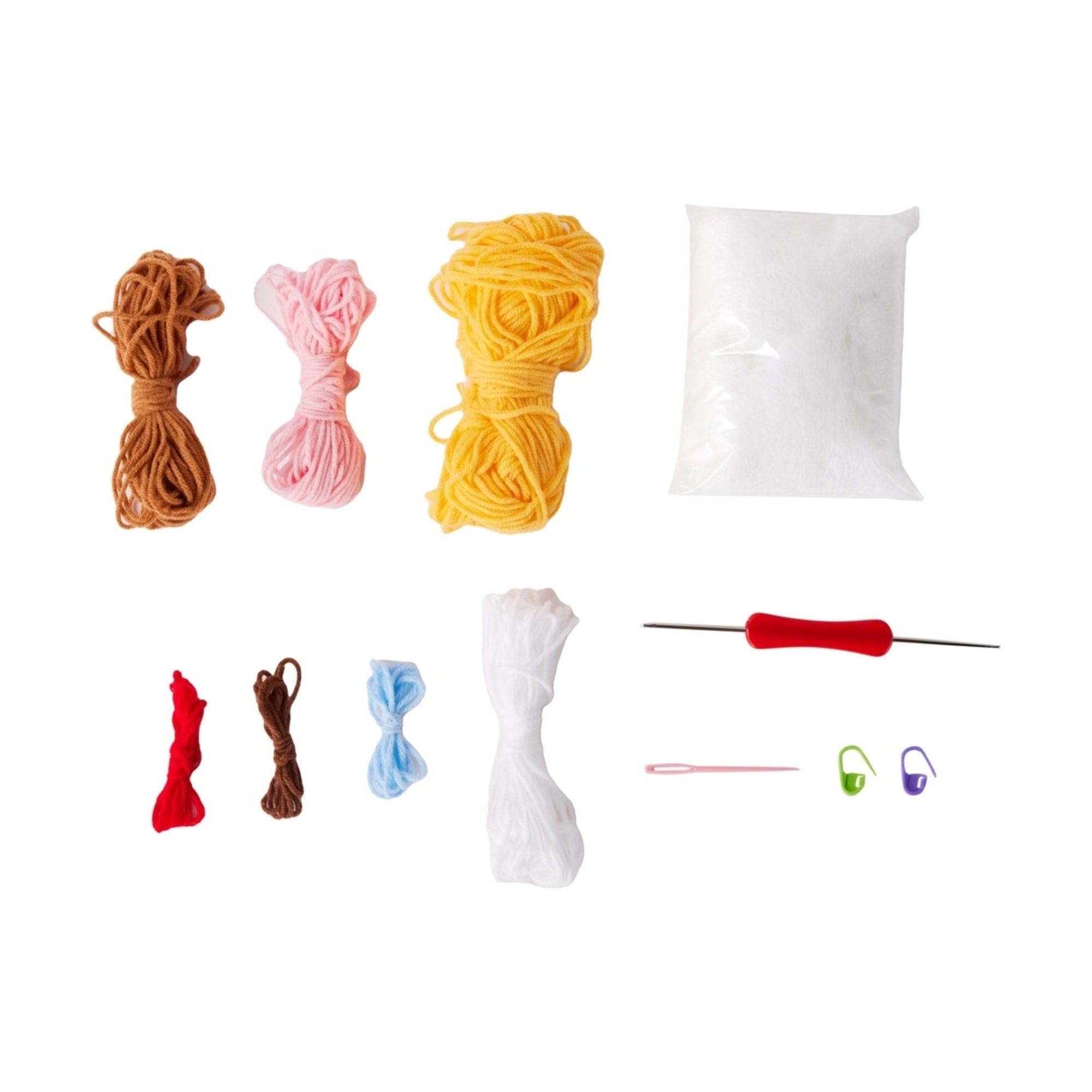 This kit includes 7 coloured yarns, 1 crochet hook, 1 plastic needle, fiberfill and instruction sheets Suitable for ages 8+ years.