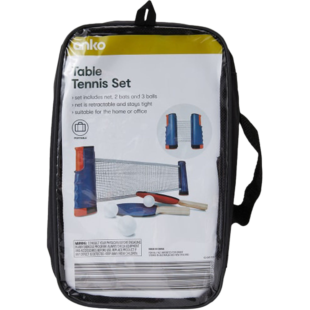 Product Details: Includes 1 x net, 2 x bats and 3 x balls, Dimensions/Size:Bat: 25.5cm (L) x 15cm (W) x 0.5cm (D),Net: 14cm to 175cm (L) x 19.5cm (H) x 5.3cm (D),Ball: 4cm (Dia.) Material:Bat: Plywood and rubber, Net: Polyvinyl chloride (PVC), acrylonitrile butadiene styrene (ABS) and polyethylene (PE),Ball: Polypropylene (PP),Colour:White, blue and red Features:Portable, Net is retractable and stays tight, Suitable for home or office, Additional Information, Warning: Consult your physician before engaging in any exercise program. Follow usage instructions carefully.