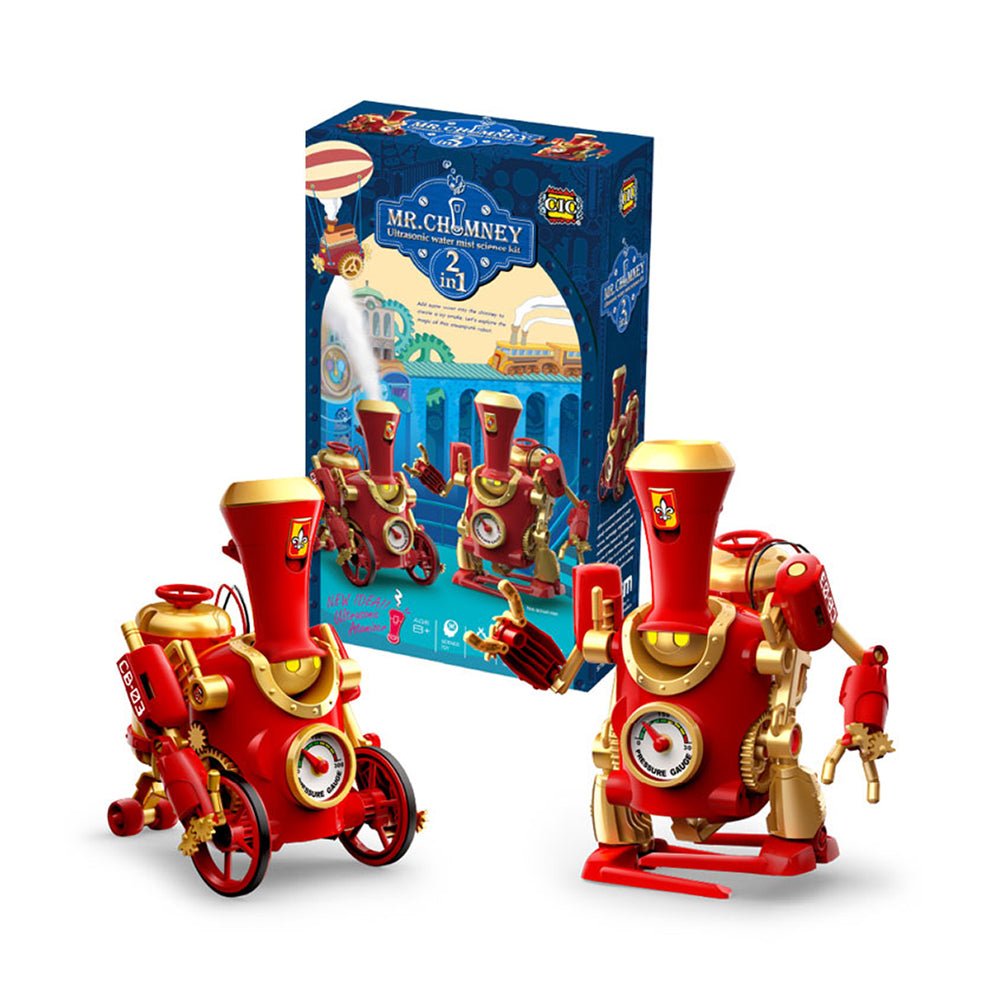 Mr. Chimney - 2 in 1 Ultrasonic Water Mist Science Kit: Build a Steam Train with fully functional piston or Steam-bot, a robot that walk forward day and night with its special chimney.