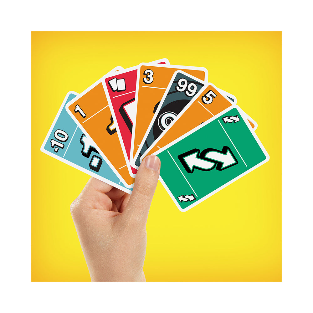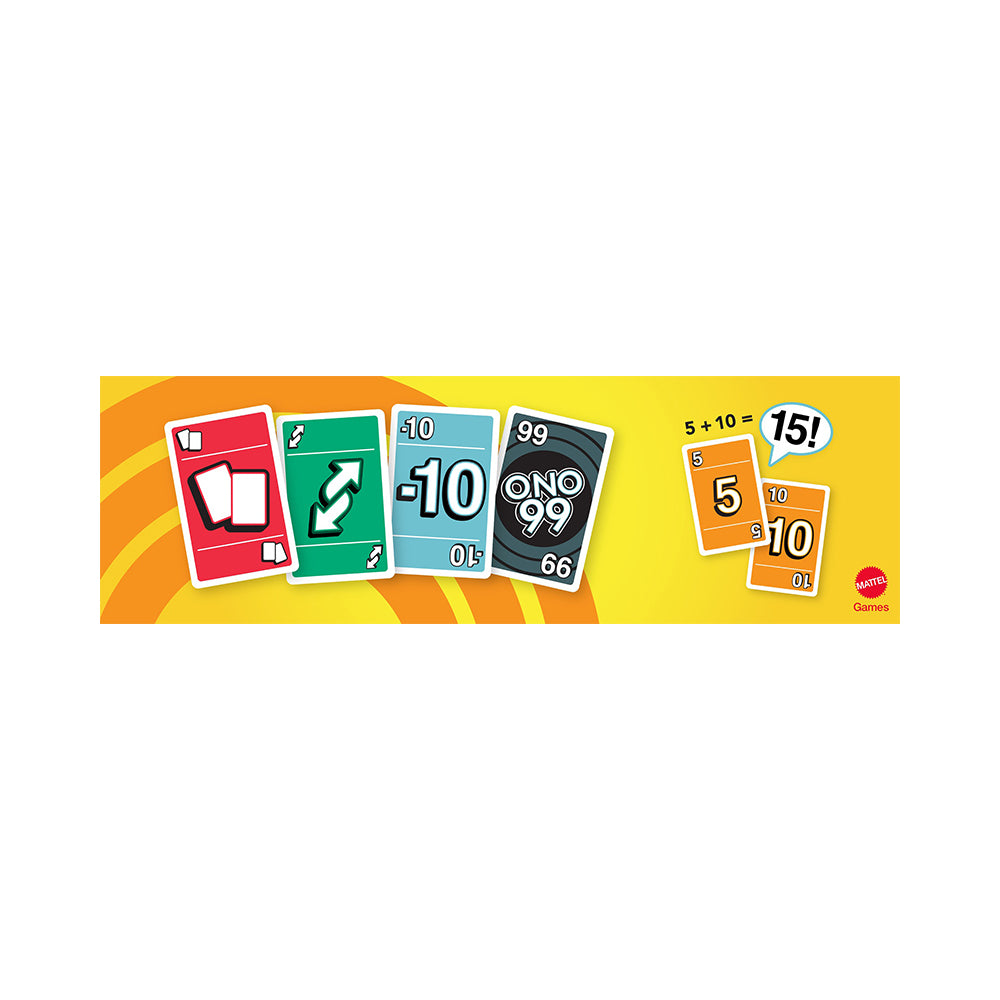 In the easy-to-learn, fast-paced ONO 99™ card game, 2 to 6 players try to avoid being the one to place the card on the discard stack that makes the running total go to 99 or over! Every card counts, and as each player puts a card on the discard pile, they call out the total. Don't forget, the objective is to keep the total under 99! Watch out, because one of the cards is the ONO 99™ card; if a player is dealt or draws an ONO 99™ card, they must keep it and may not play it! The ONO 99™ card game can be great practice for kids learning mathematical addition and subtraction Last player left wins. A great choice for game night, or to bring along when traveling. Colors and decorations may vary.