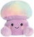 Lunette Mushroom is a plush toy with a soft purple body and a large, multicolored mushroom cap on top. It has a friendly face with a wide smile and rosy cheeks!