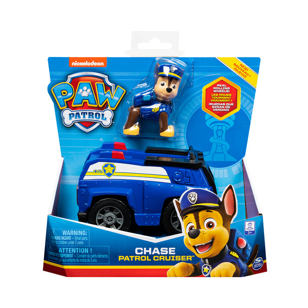 The PAW Patrol are on a roll in their rescue vehicles! Join Chase on action-packed missions with his Police Cruiser! When trouble strikes, place Chase (figure included) into the driver's seat and roll to the rescue with real working wheels! With authentic detailing and realistic features, the PAW Patrol's beloved police dog and his cruiser bring all the excitement of PAW Patrol to life. As your child plays with Chase and his Police Cruiser, your child's imagination will be lit up with rescue missions full of friendship, teamwork and bravery. Team up with the rest of the pups and their rescue vehicles (each sold separately) and help save the day in Adventure Bay! Race to the ruff ruff rescue with Chase and his Patrol Cruiser!