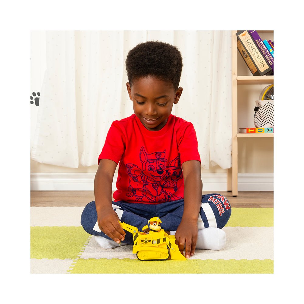 The PAW Patrol are on a roll in their rescue vehicles! Join Rubble on action-packed missions with his Bulldozer! When trouble strikes, place Rubble (figure included) into the driver's seat and roll to the rescue with real working tracks, and a movable drill and scoop! With authentic detailing and realistic features, the PAW Patrol's beloved construction expert and his vehicle bring all the excitement of PAW Patrol to life. As your child plays with Rubble and his Bulldozer, your child's imagination will be lit up with rescue missions full of friendship, teamwork and bravery. Team up with the rest of the pups and their rescue vehicles (each sold separately) and help save the day in Adventure Bay! Race to the ruff ruff rescue with Rubble and his Bulldozer!
