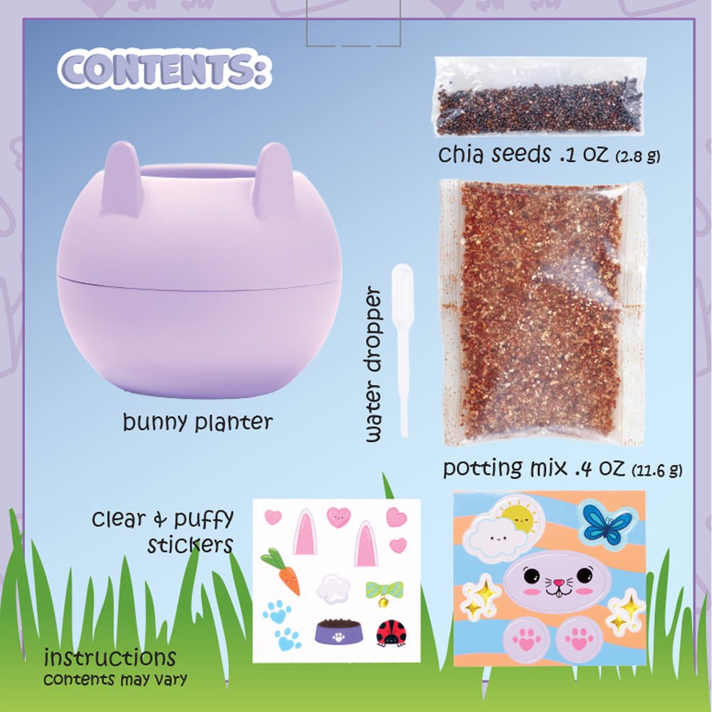Complete set includes pots, craft materials, quick grow chia seeds and potting mix. Just add water using the dropper included. Collect them all!