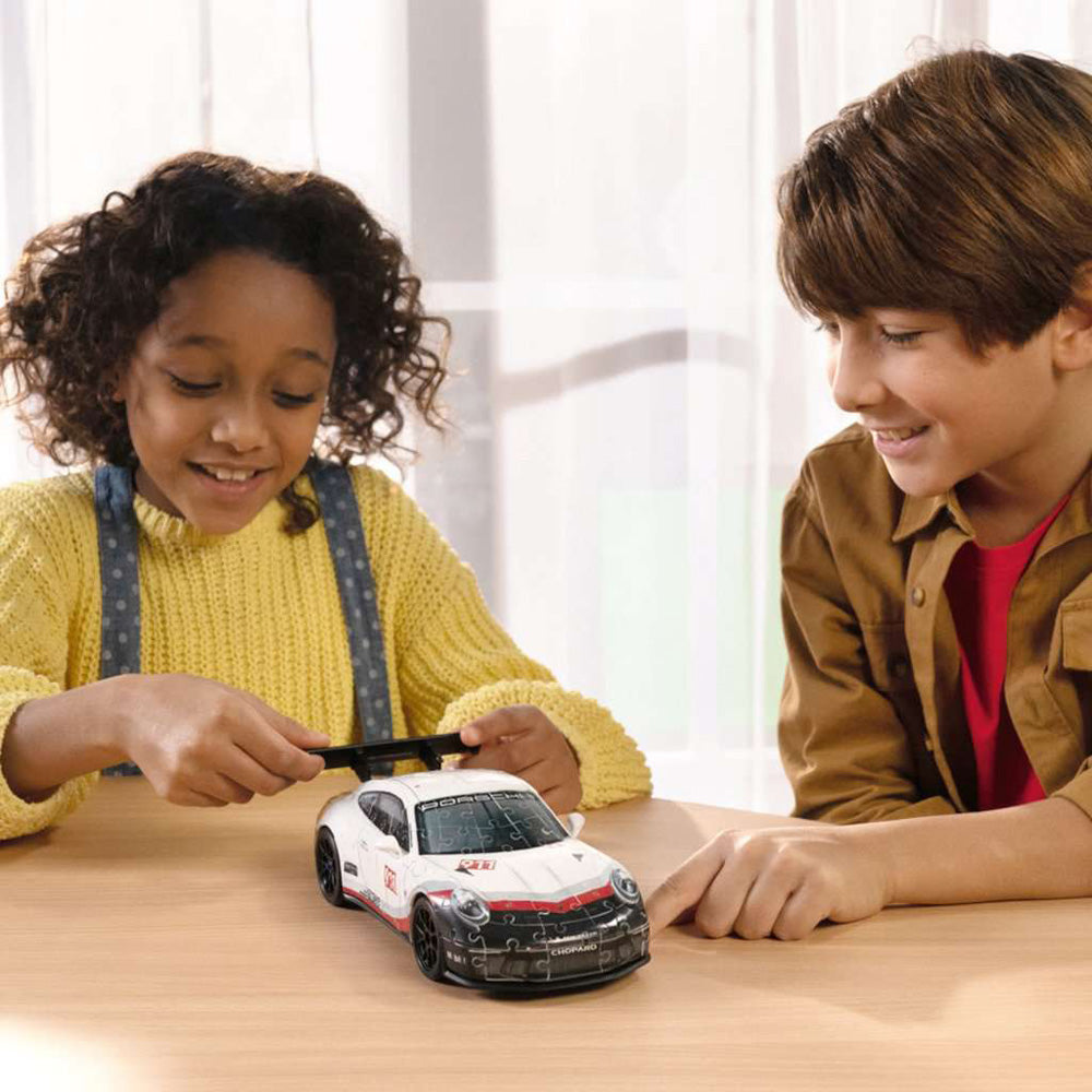 This 152-piece 3D puzzle includes everything you need to build this stunning 1:18 scale model of the "Porsche 911 GT3 Cup"! This puzzle uses unique plastic pieces, which slot together to build a sturdy and strong model; no glue required! Each puzzle piece is printed with a number on the reverse side, so you can assemble the puzzle by eye or simply follow the numbers.