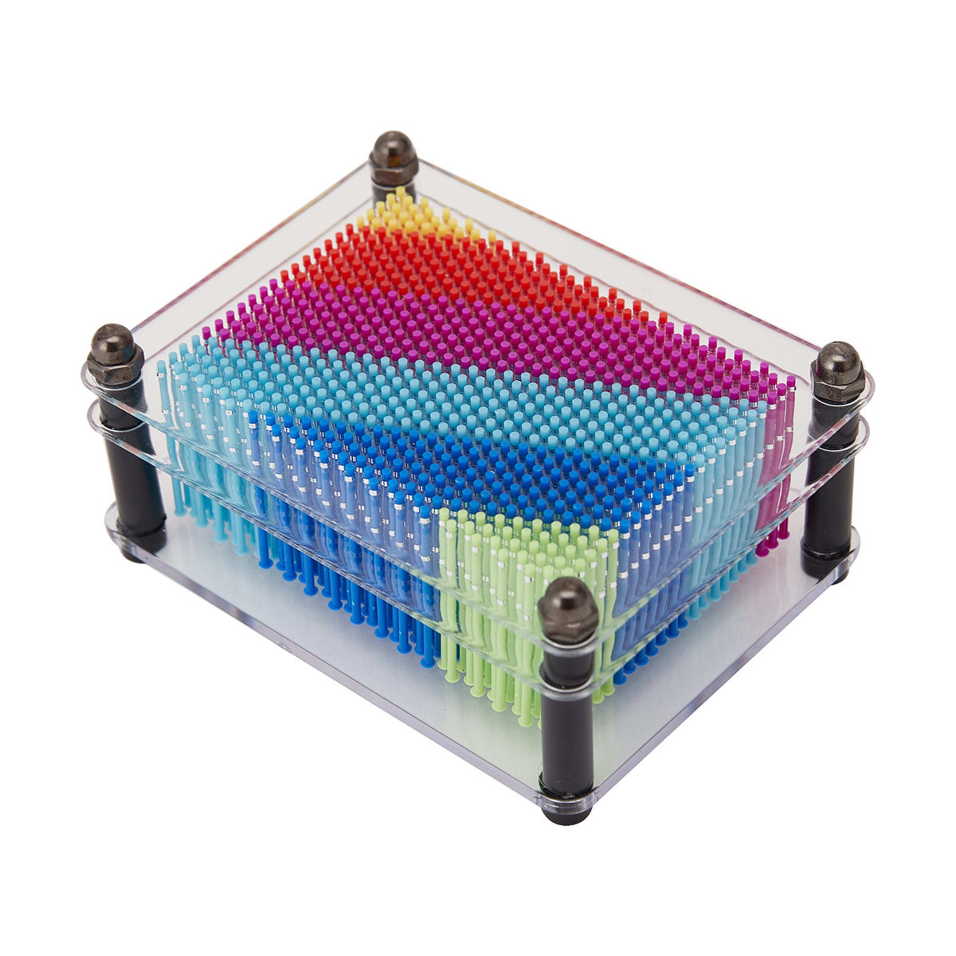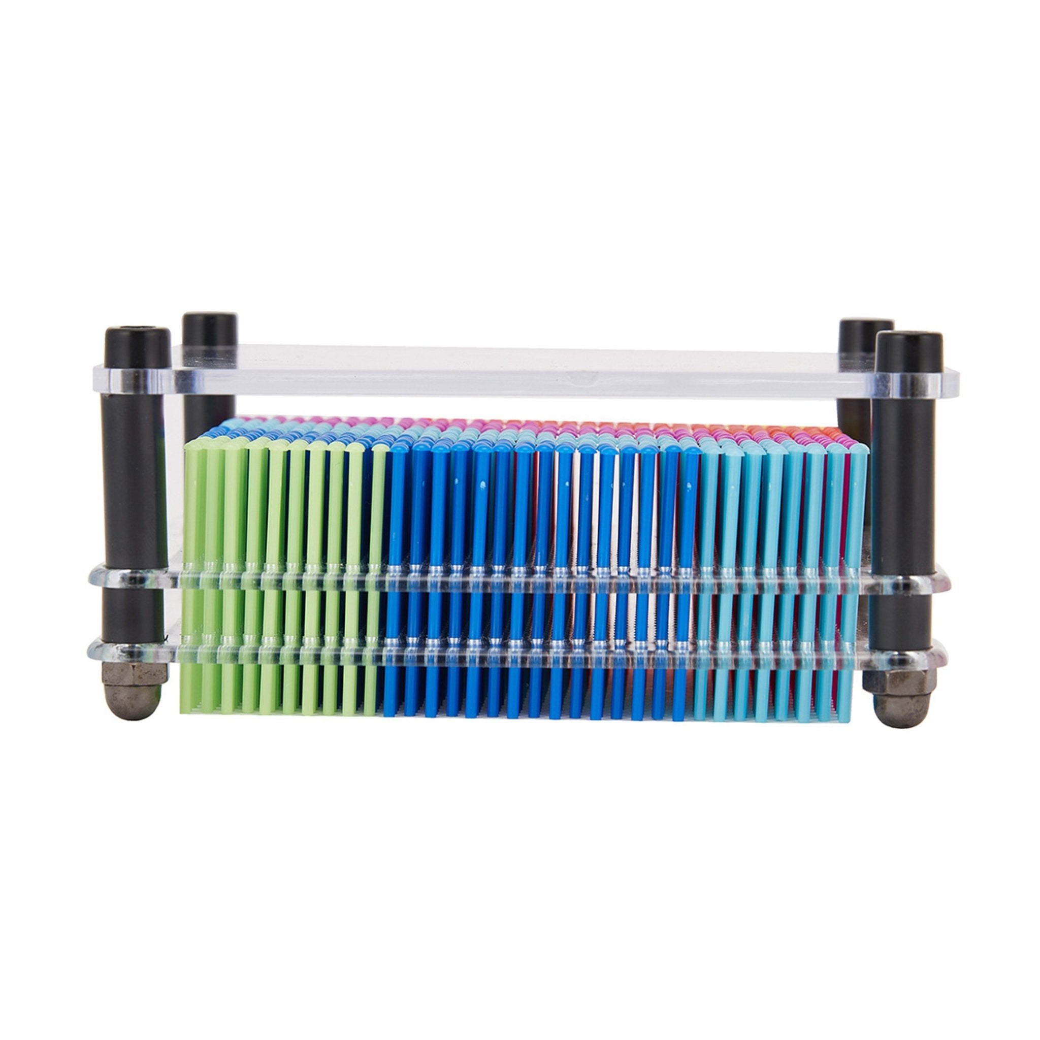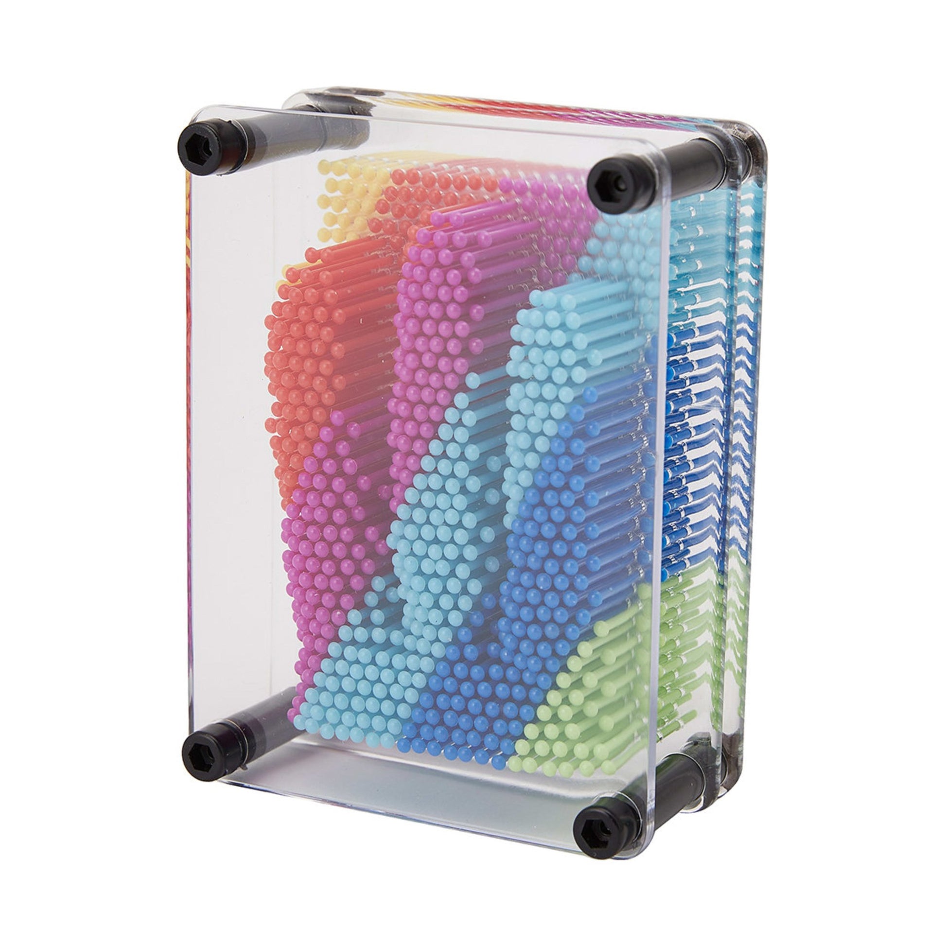 Kids can create 3D effects by sliding the pins in and out of this Rainbow Pinart frame.