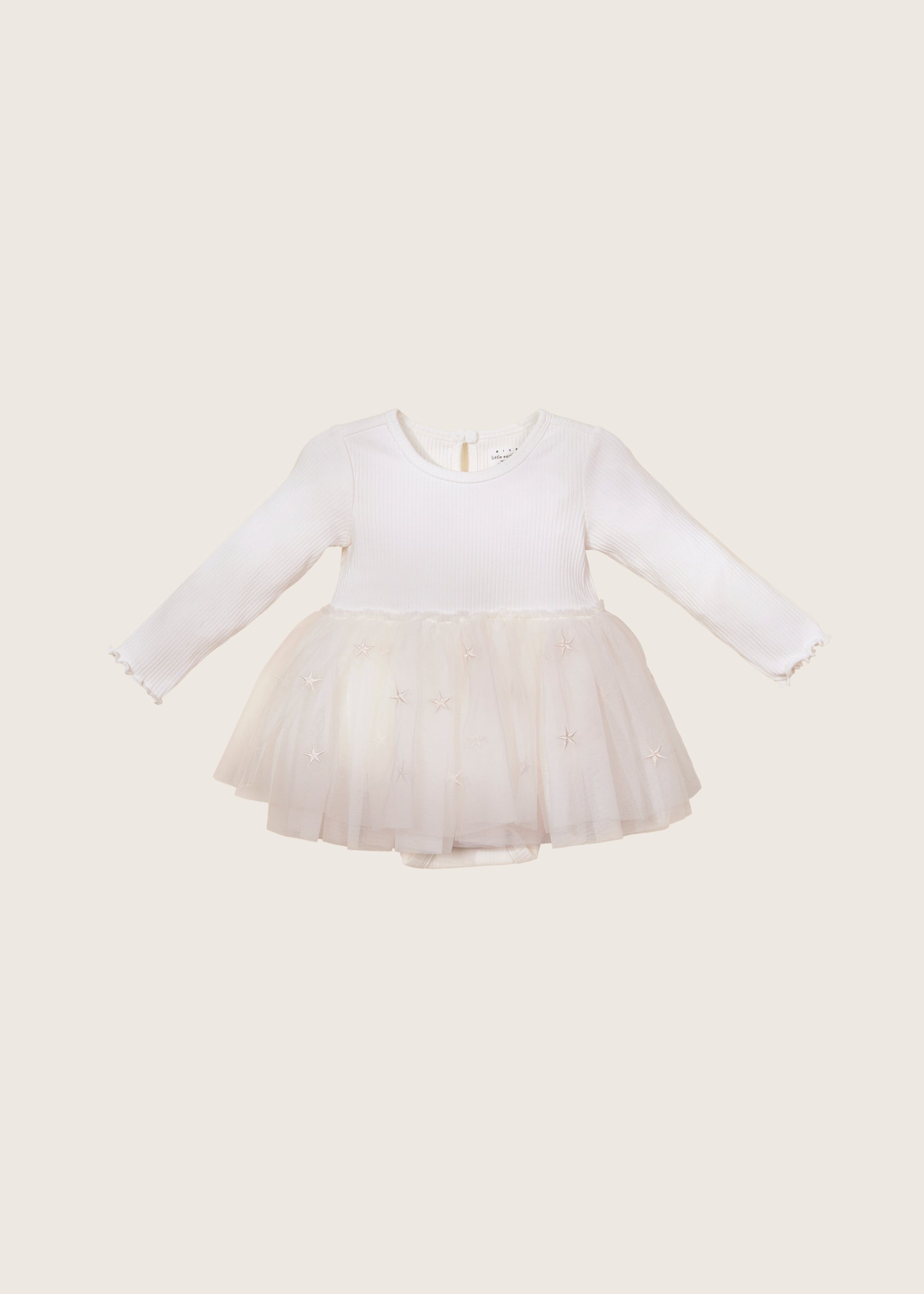 This enchanting long sleeve bodysuit dress features a tutu-style embroidered tulle skirt that adds a touch of magic and elegance.