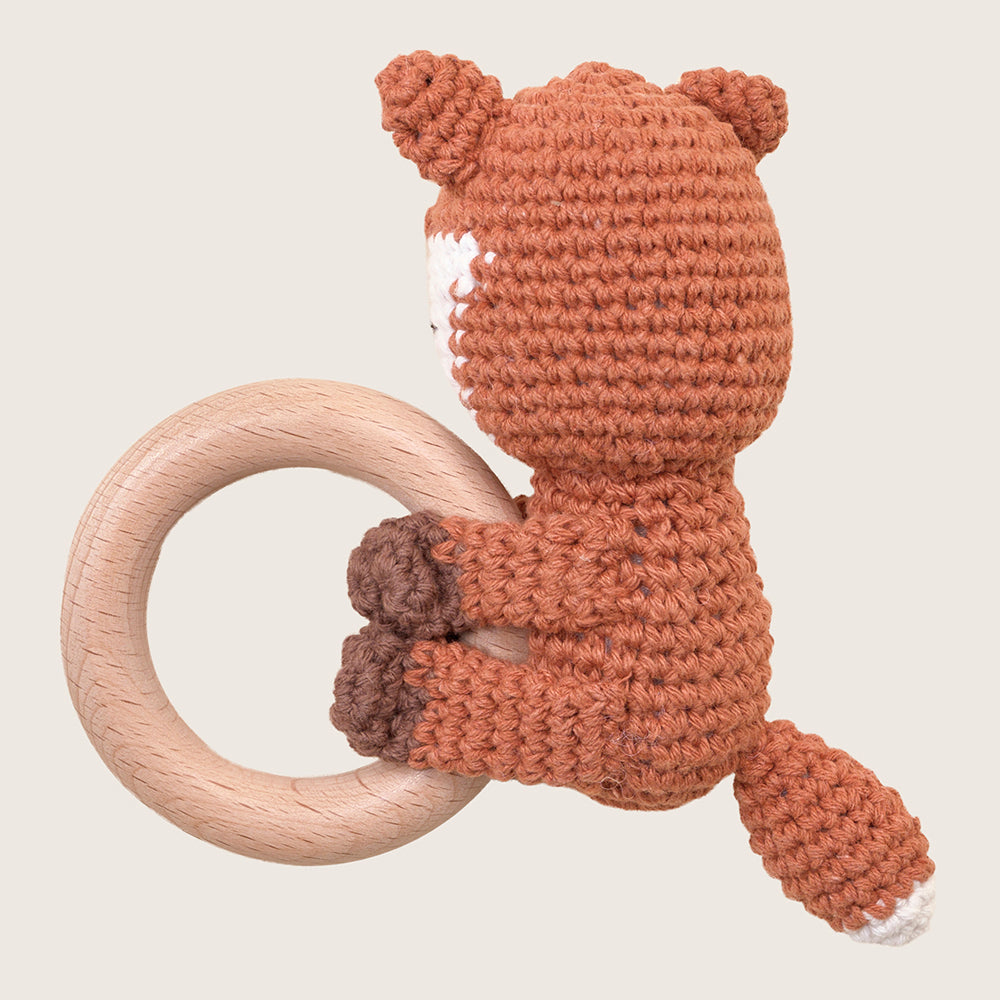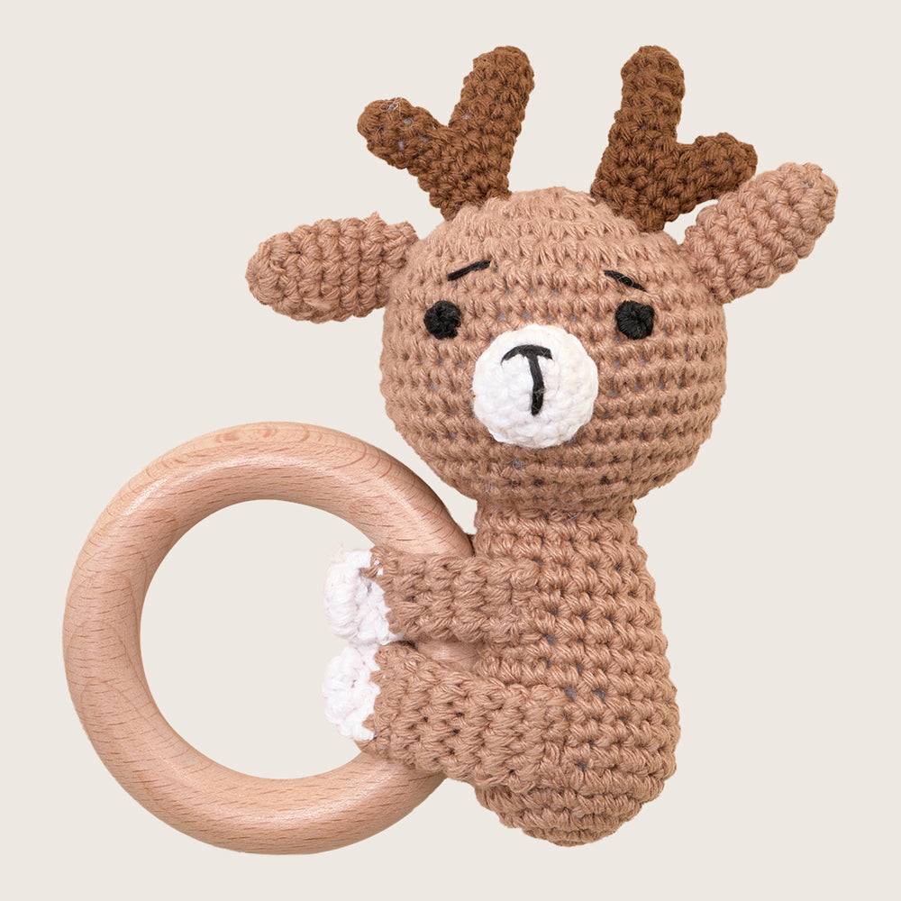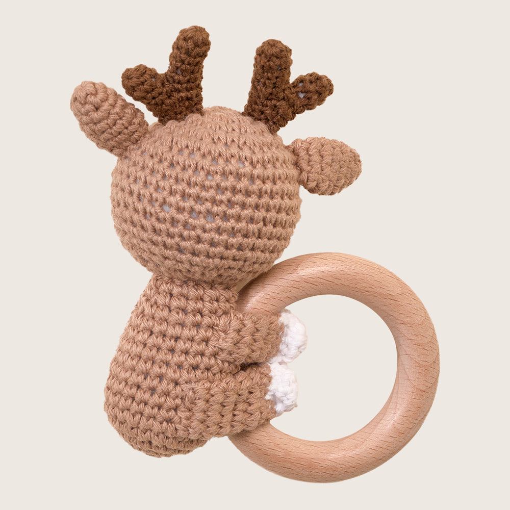 Knitted fox rattle/deer rattle is made from soft cotton, perfect for soothing their teething and engaging their senses.