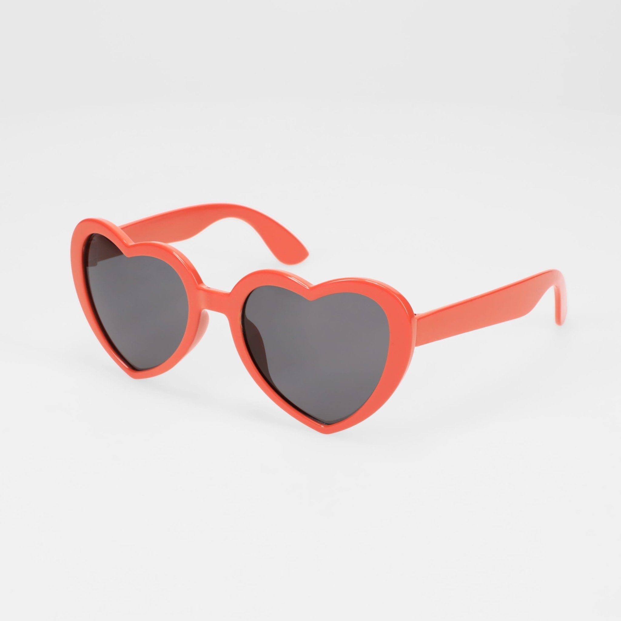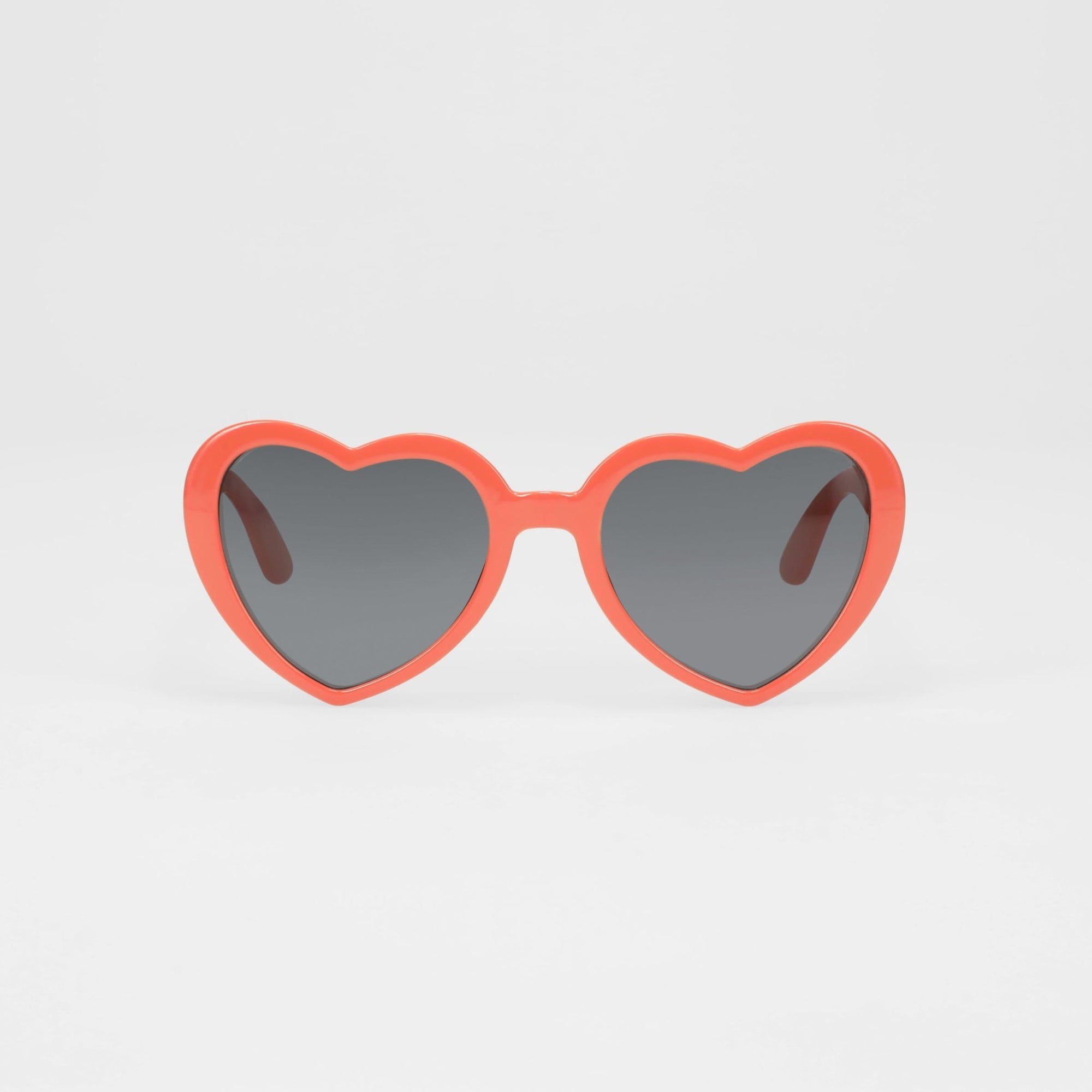 Sunglasses with heart shape frosted finish frames with tinted lenses in plastic.